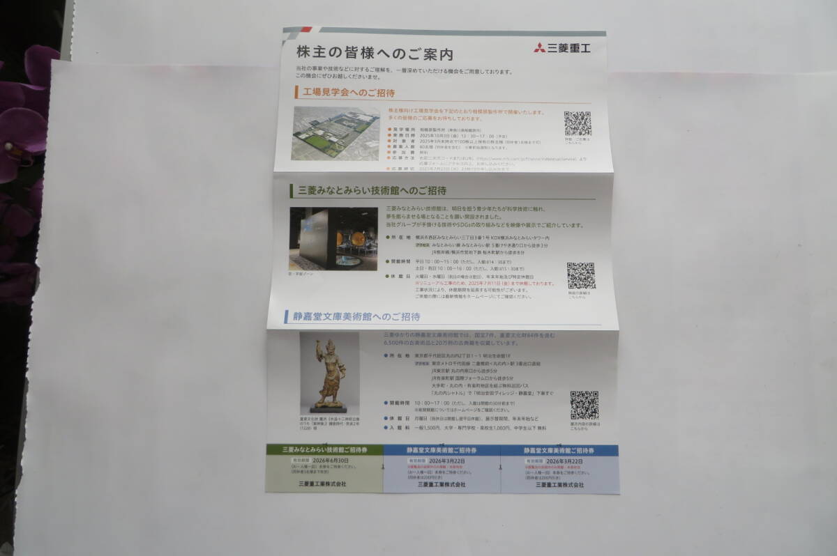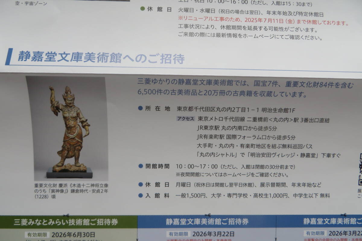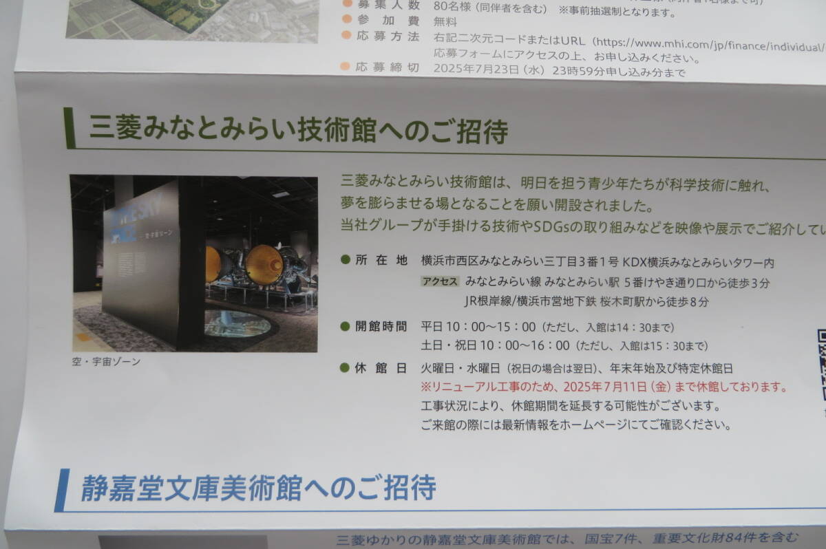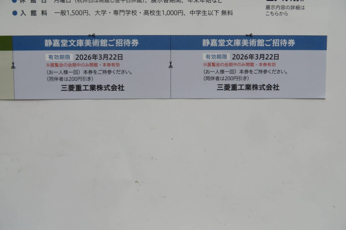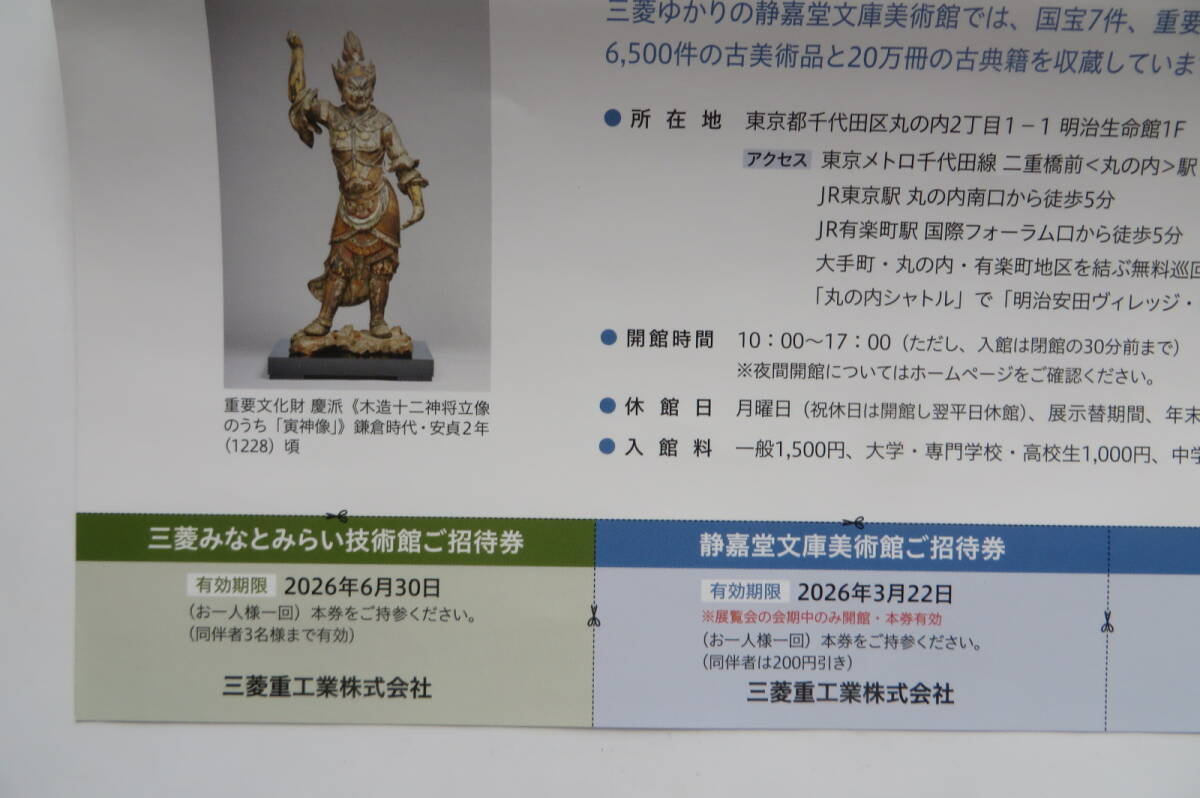 三菱重工 株主優待券 静嘉堂文庫美術館 招待券 2枚 三菱みなとみらい技術館 招待 券 1枚
