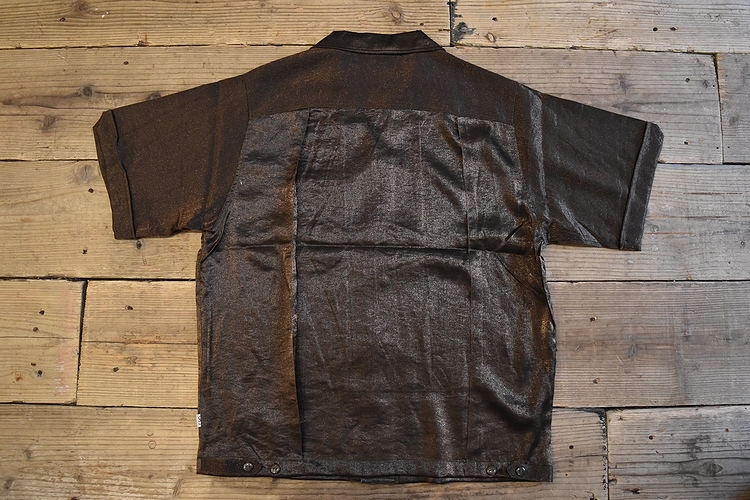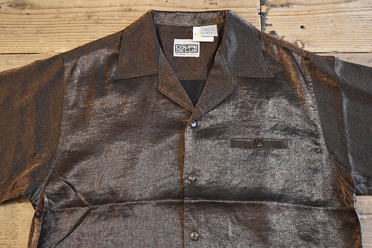 デッドストック品◎90SビンテージCOUPE DELUXコープデラックス50sスタイル半袖開襟シャツLブラウン茶系アメカジストリート未使用品 t828
