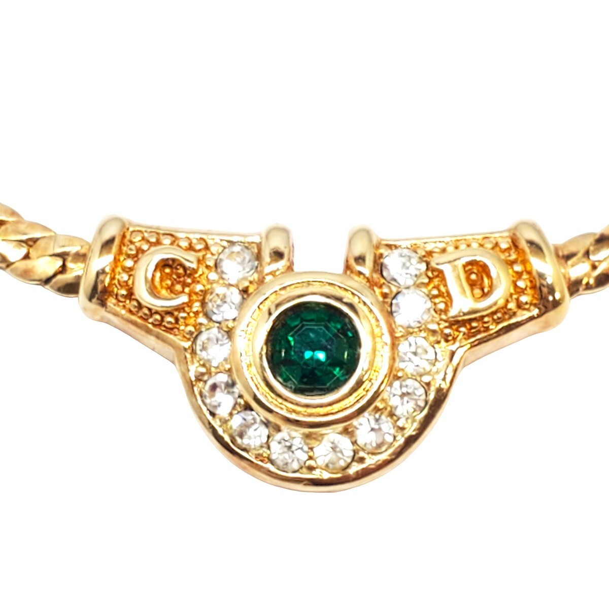 Christian Dior クリスチャンディオール 【lay2064R】 ラインストーンネックレス ゴールド グリーン メッキ アクセサリー ヴィンテージ CH | |