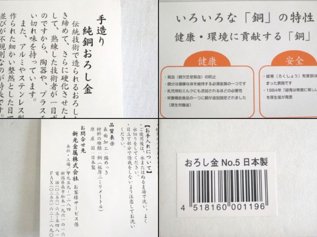 商品名 | 未使用品!No5 新光堂 手造り純銅おろし金 5号 |