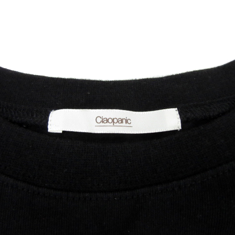 チャオパニック CIAOPANIC カットソー 七分袖 ラウンドネック 無地 オーバーサイズ 黒 ブラック /YS7 レディース