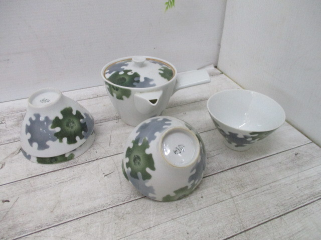 ★昭和レトロ 茶器セット 箱なし★ 急須 1 湯飲み 5客のセットです。 サイズ 湯飲み φ9.5cm 高さ5.5cm 湯飲みは冷菓など入れても可愛いです。 古い物になりますのでキズや汚れがあります。急須の茶渋はハイターで汚れは落ちるかと思いますがそのまま梱包となりますのでご了承下さい。 ※現状品となります。 ヒビやカケはないです。 ご不明な点がありましたらお気軽にお問い合わせください。 当社のオークションは返品・交換・キャンセル等は一切お断りさせて頂いております。充分ご検討の上ご入札下さいませ。 | |