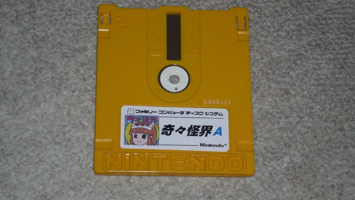 ディスクシステム用ソフト「奇々怪界」をお願いします。違うソフトのラベルが貼ってありましたので、タイトルがわかるように自作のラベルに貼りかえています。動作確認済み