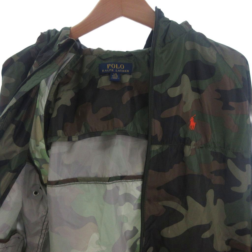 ポロ ラルフローレン パーカー ジャケット フルジップ ロゴ 刺繍 カモフラ 迷彩 緑系 カーキ L 160 ボーイズ キッズ
