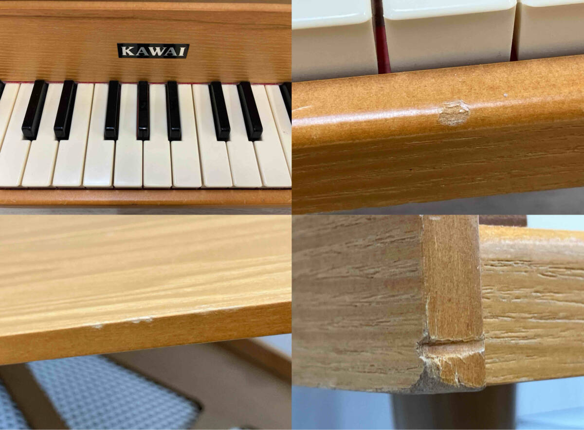本体に傷や汚れあり 鍵盤に経年劣化による変色あり 本体蓋部分の紐がビスから外れてしまっています(画像にてご確認下さい) 本体裏と外箱に書き込みあり(画像にてご確認下さい) 外箱に傷みや汚れあり 配送は外箱に緩衝材(プチプチ)で巻いての簡易梱包になると思われます。ご了承下さい。 |