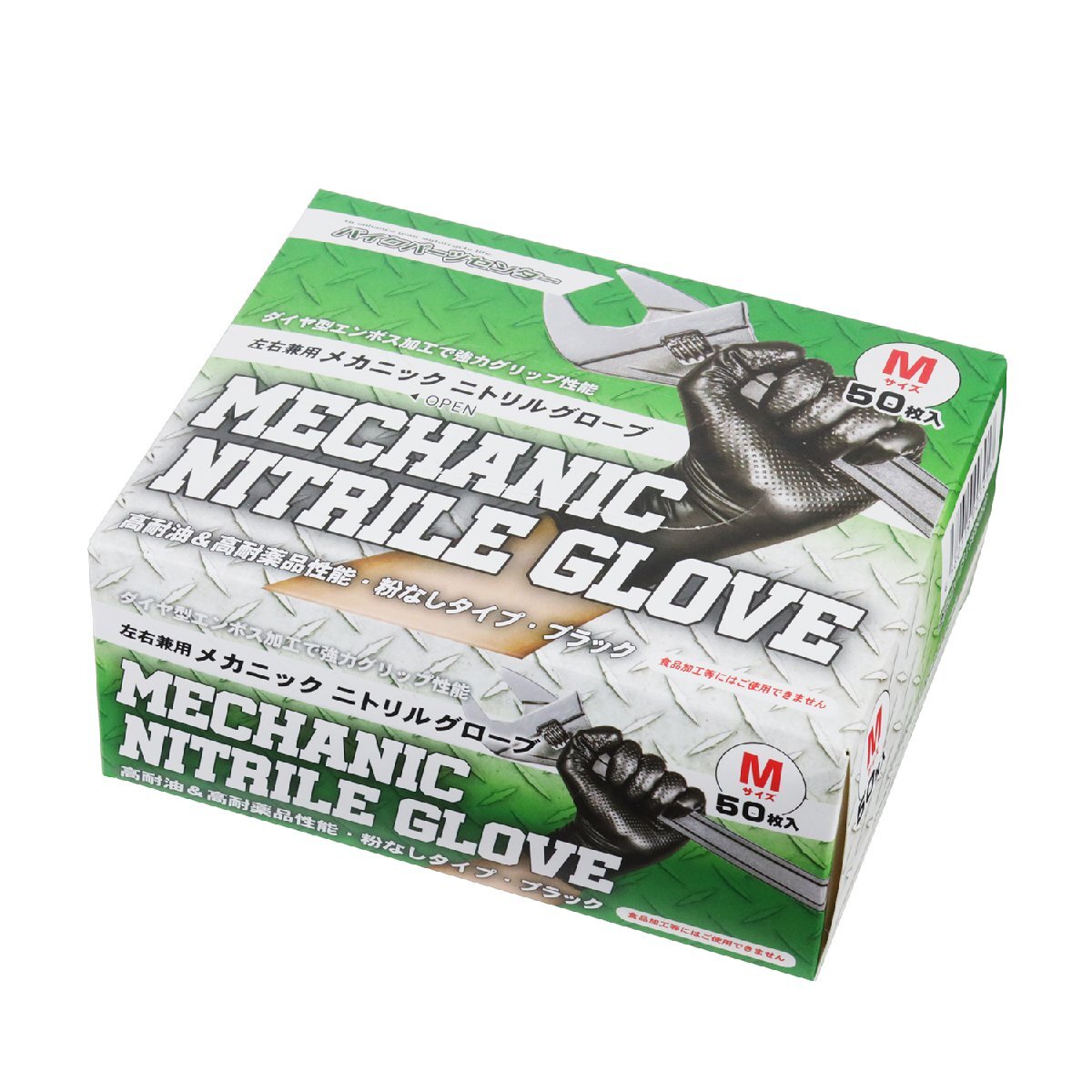 50枚入り、左右兼用メカニック ニトリルグローブ 高耐油&高耐薬品性能・粉なしタイプ