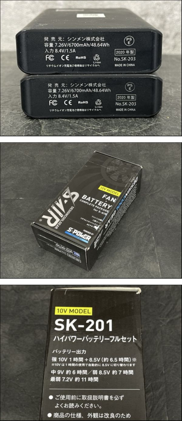 動作保証 シンメン S-AIR ハイパワーバッテリーフルセット ファン SK-202 バッテリー2点 10V 空調服用 現場 作業 アウトドア / 301063 |