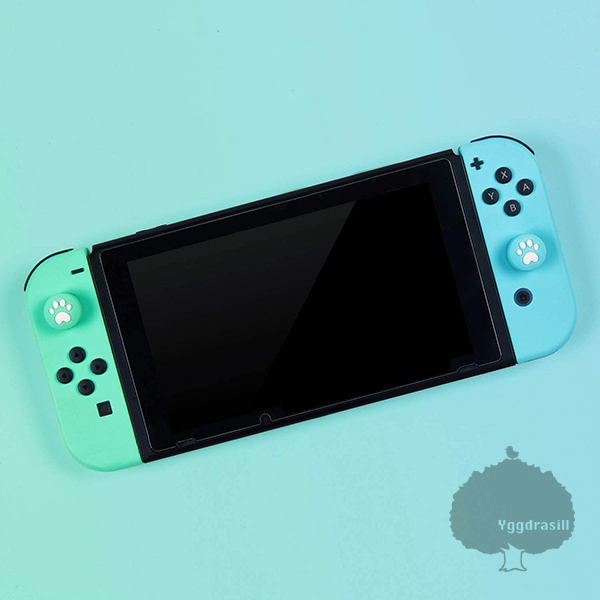 YGG★新品 Nintendo Switch ジョイコン用 アナログスティック カバー シリコン素材 肉球 グリーン×ブルー Joy-con ニンテンドースイッチ