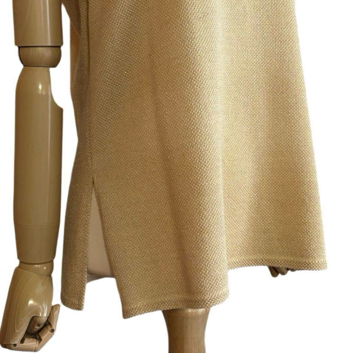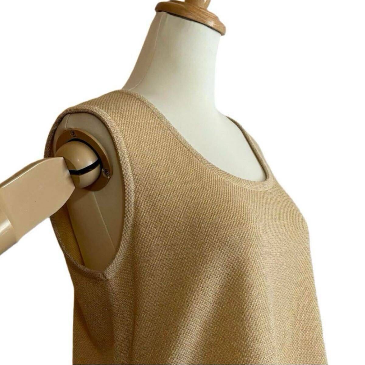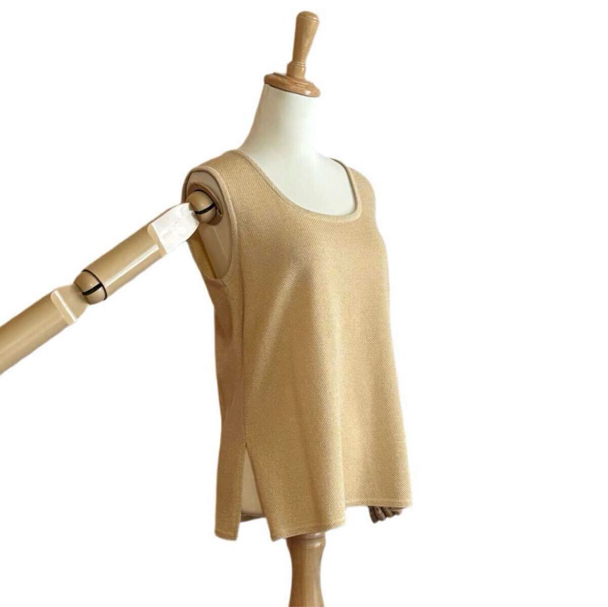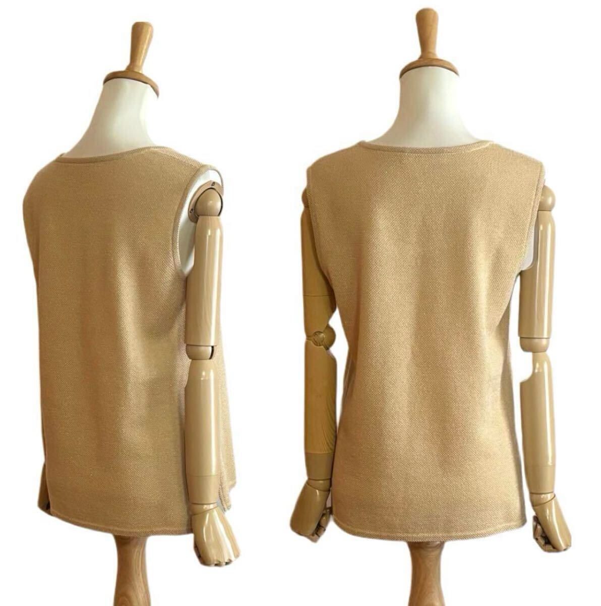柔らかな淡いイエローベースに、さりげなくきらめくゴールドラメ糸を織り込んだ、華やかさと上品さを兼ね備えたニットベストです。