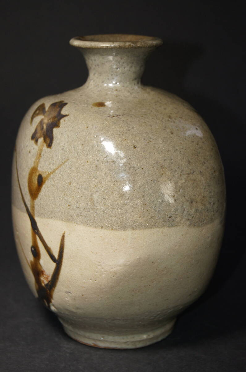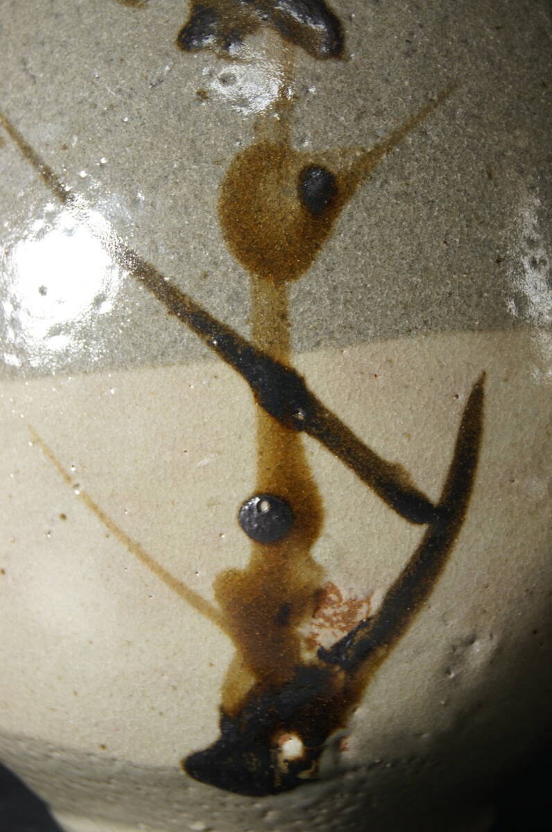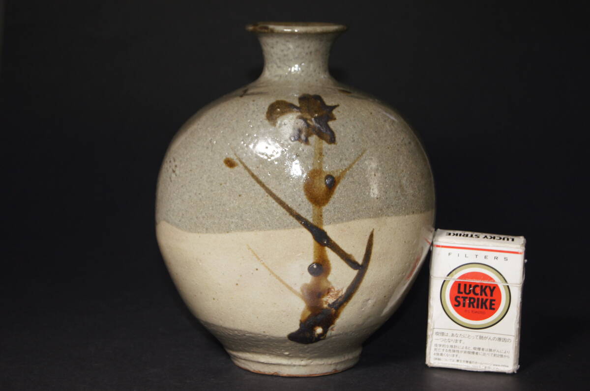 真贋保証 人間国宝■浜田庄司 作■ 掛分 唐黍文 鉄絵扁壷 箱無 濱田庄司 扁壺 花瓶 花器 民藝 民芸 掛け分け | |||||||||||