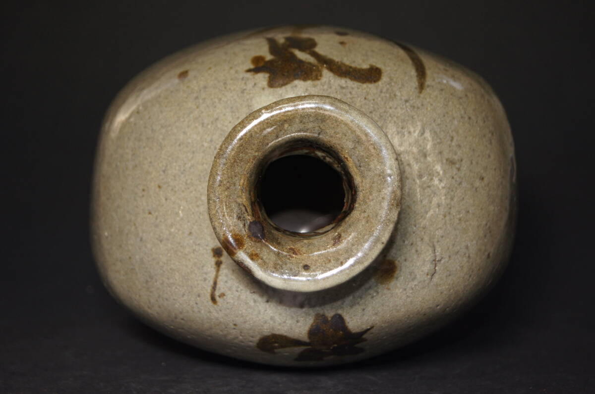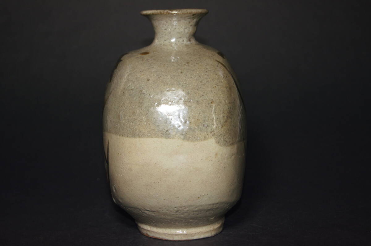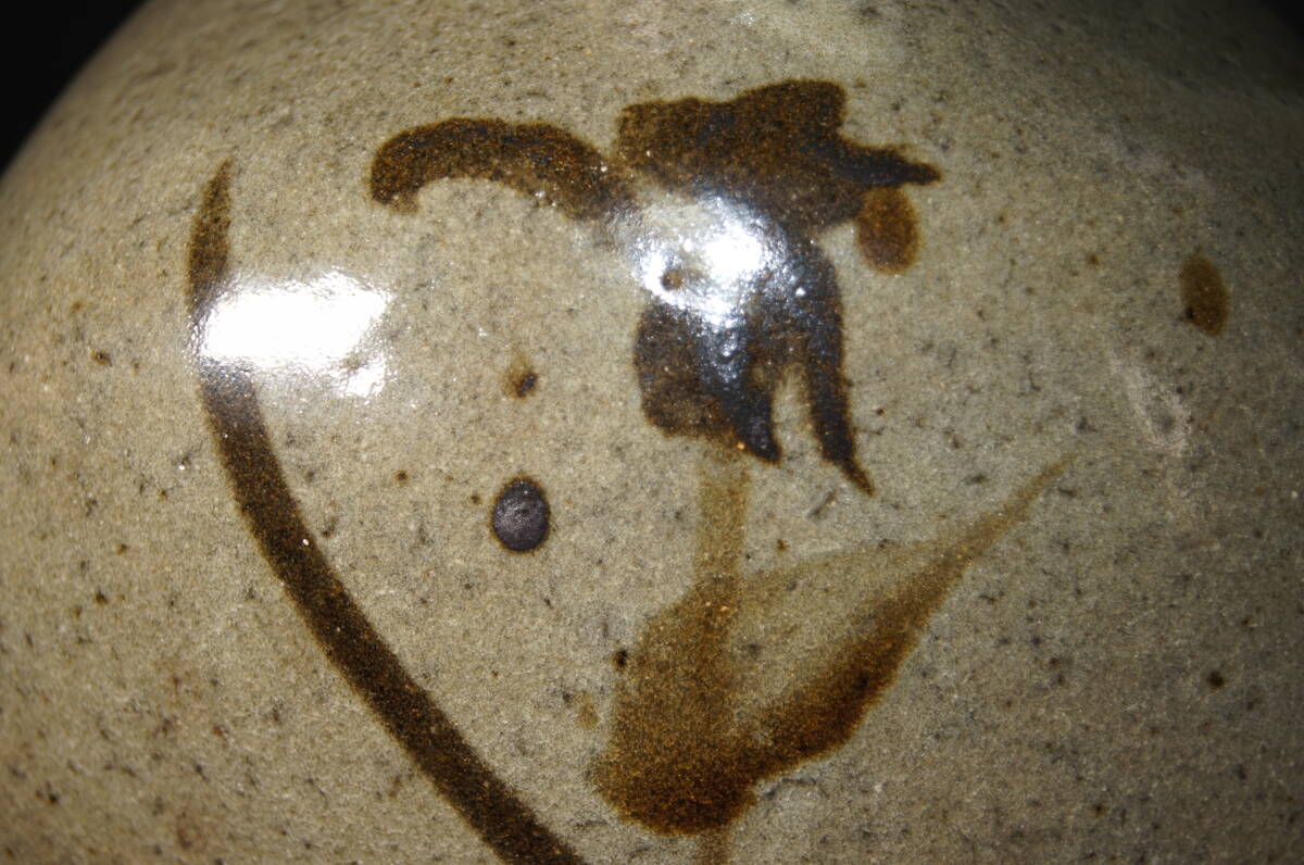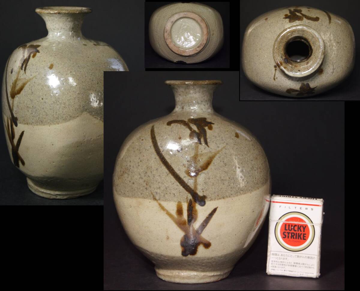 真贋保証 人間国宝■浜田庄司 作■ 掛分 唐黍文 鉄絵扁壷 箱無 濱田庄司 扁壺 花瓶 花器 民藝 民芸 掛け分け | |||||||||||
