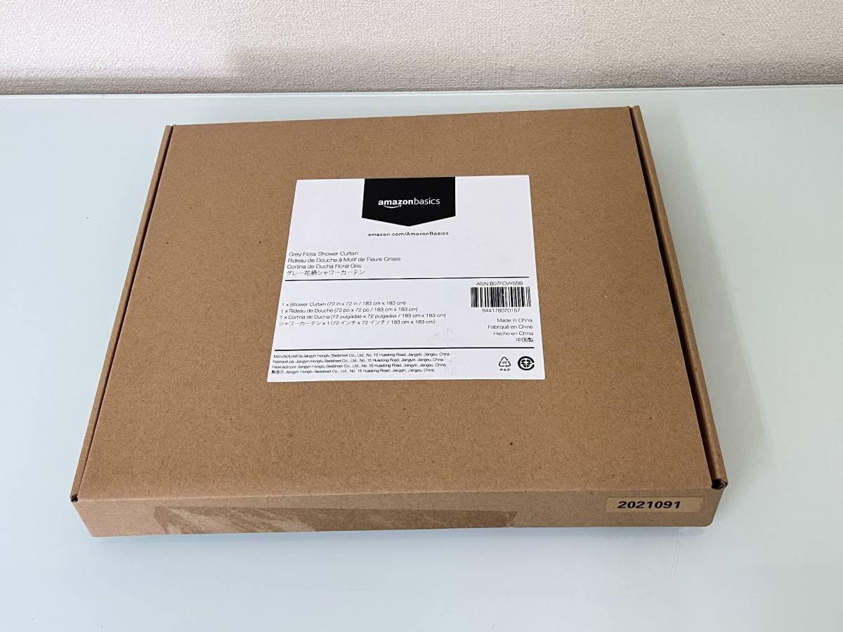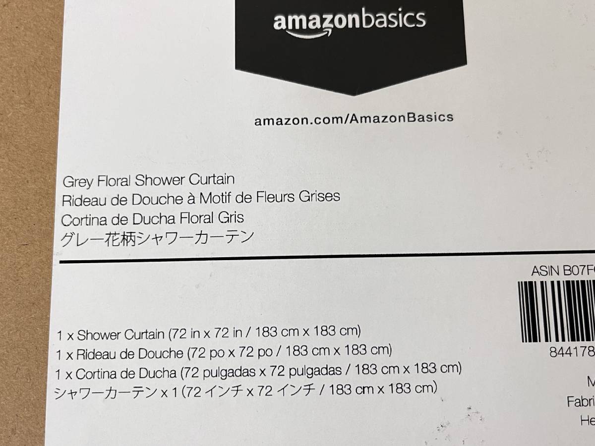 未使用!格安処分!【AmazonBasic】 アマゾンベーシック シャワーカーテン 183×183㎝ グレー花柄