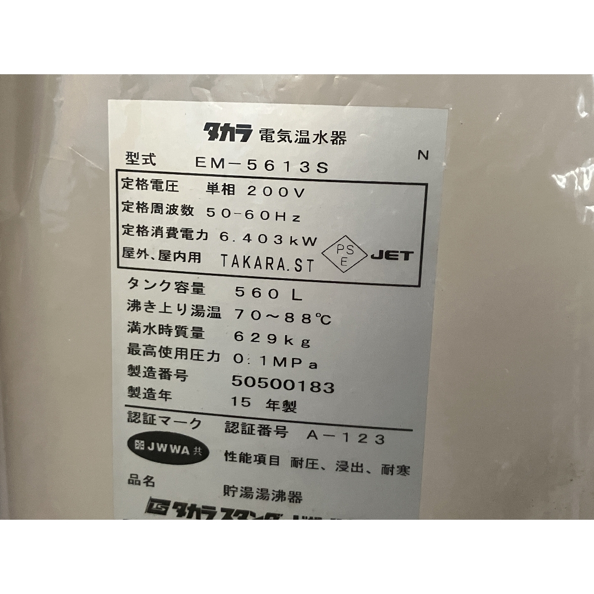 TakaraStandard タカラスタンダード 電気温水器 EM-5613S 給湯専用タイプ 未使用 楽 M9783718 |