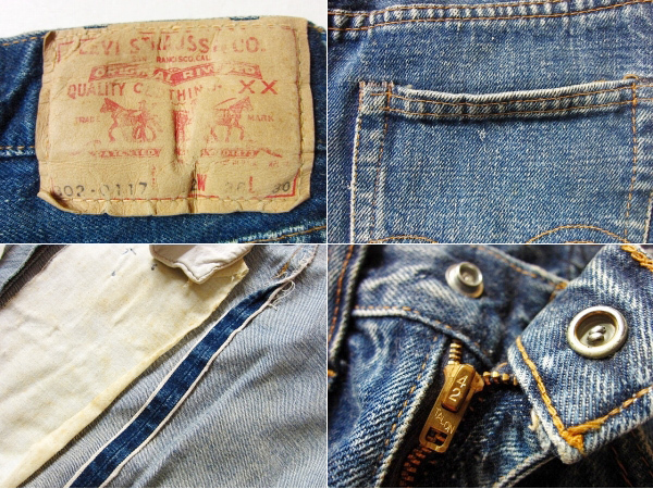 商品説明 | アメリカから買い付けたアイテムです。 リーバイス302のキッズジーンズをベースにリメイクされたデニムスカートです。ポケットのタブは欠損していますが、ビッグEタブが付いていたと思われます。42TALONジップに赤耳付きで、トップはスナップボタン留めです。薄い色の部分はポケットの残りからラングラーでしょうか。 フロント広域に縫い付けとボンドの貼り付けでデザインが施されています。 もちろんそのまま着用いただけますし、ビンテージデニムの生地取りにもご利用いただけます。 |