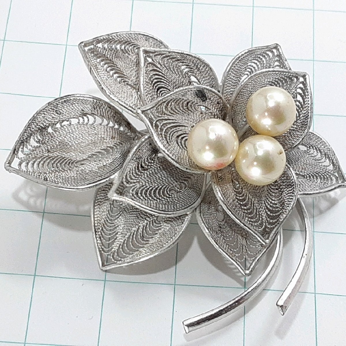 送料無料)ビンテージ☆パール お花モチーフ☆アンティーク ブローチ A31818