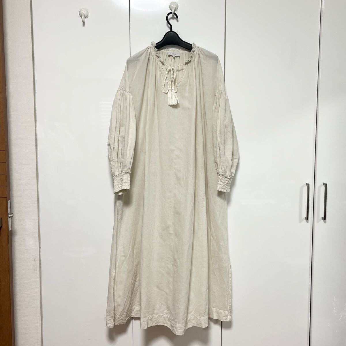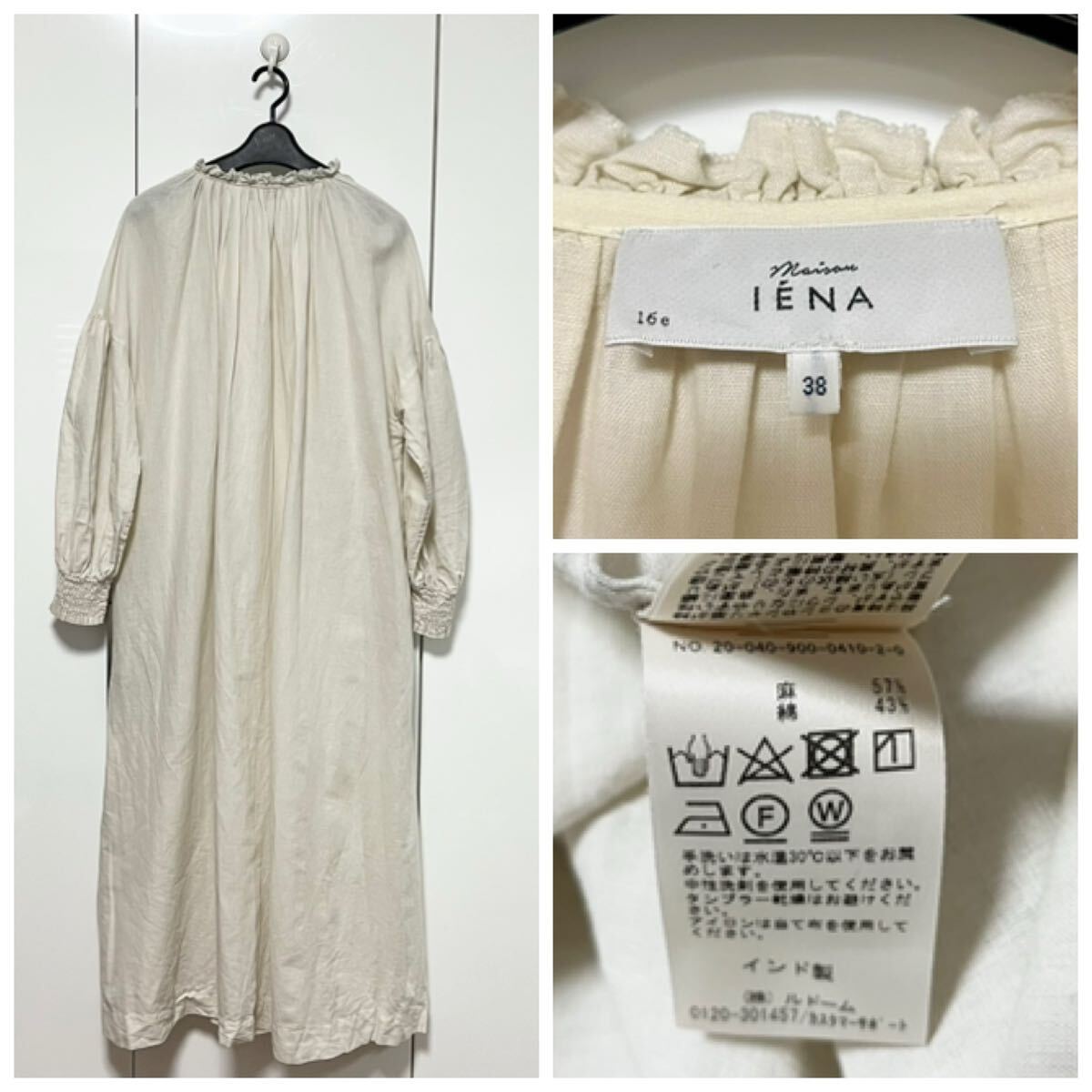 IENAのmade in INDIAコットンリネンギャザーワンピースです。特筆する汚れやダメージはありません。