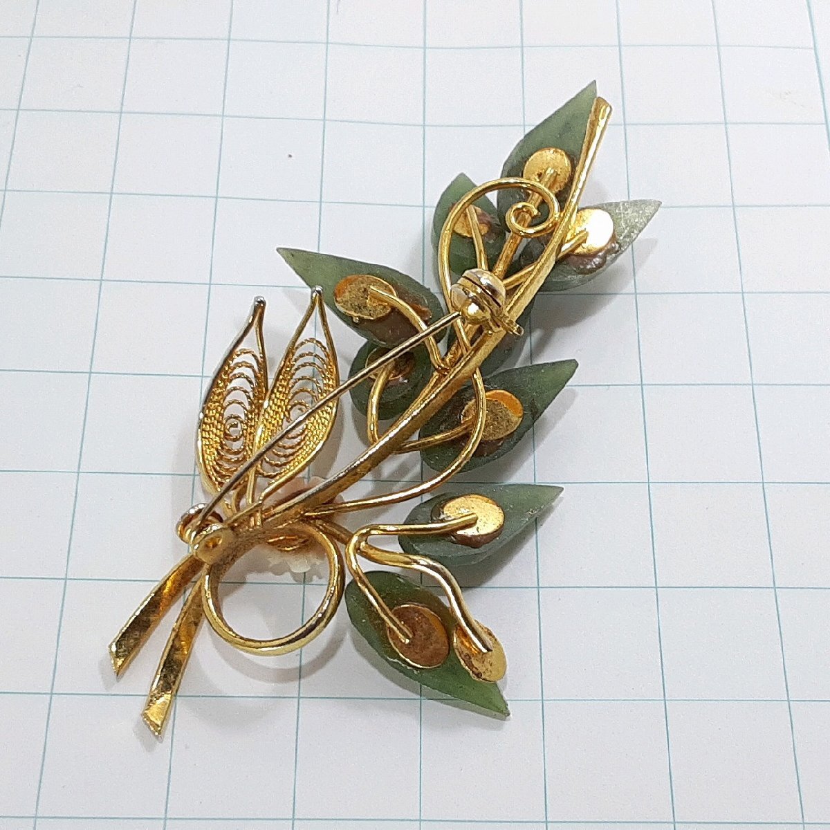 送料無料)ビンテージ☆笹モチーフ☆アンティーク ブローチ A31823
