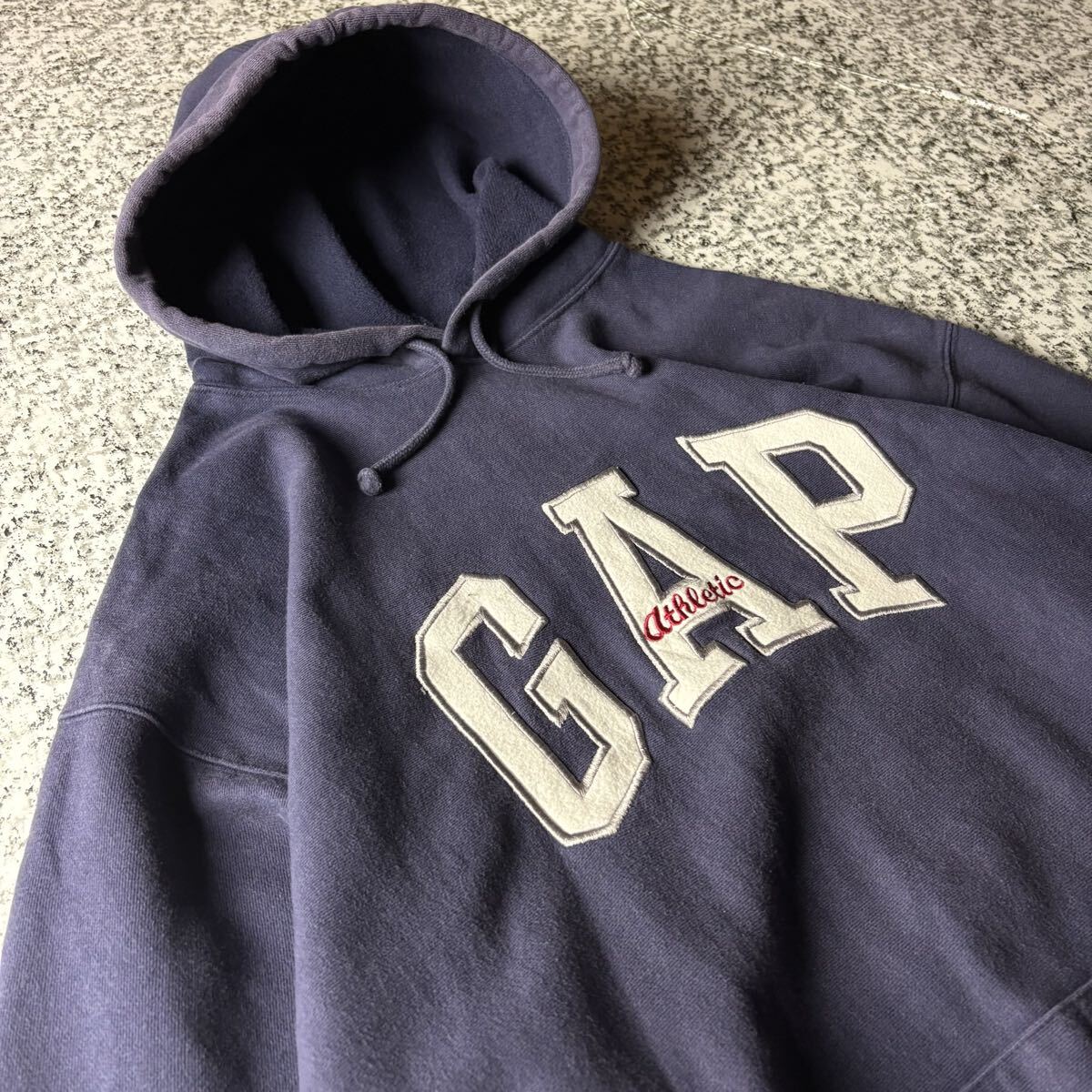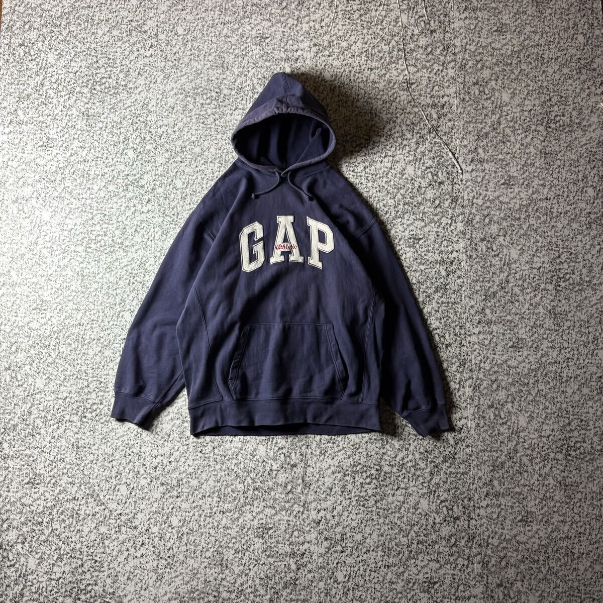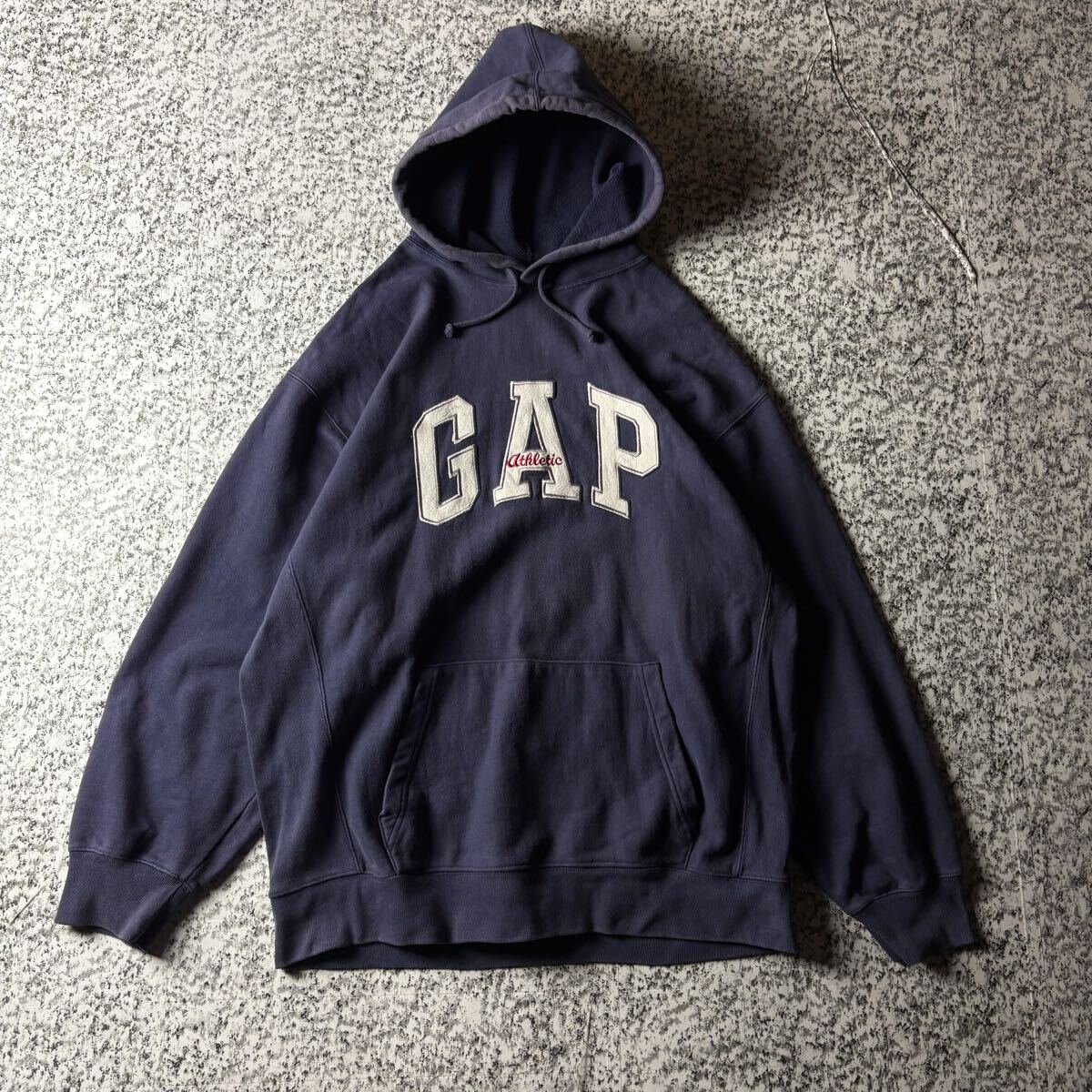 【90s USA製】オールドGAP 極太アーム 肉厚ビッグシルエットフーディー ネイビー Lサイズ 古着 リバースウィーブ仕様  パーカー