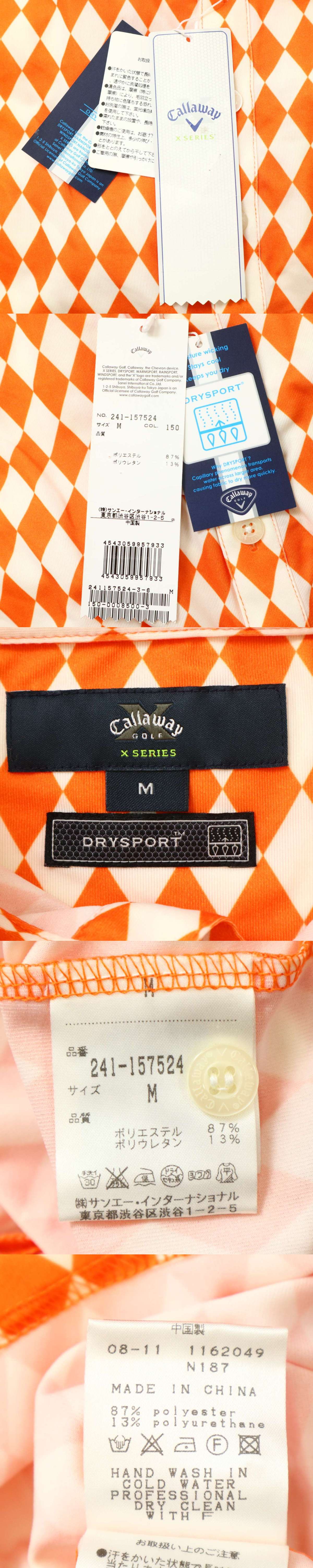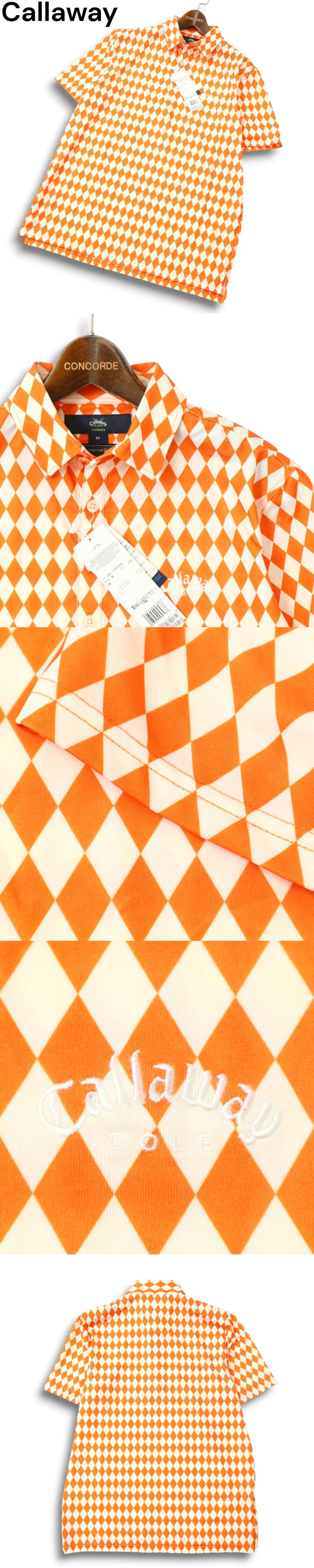 【新品 未使用】 Callaway キャロウェイ ゴルフ X-SERIES ロゴ刺繍★ ダイヤ総柄 半袖 ポロシャツ Sz.M メンズ オレンジ