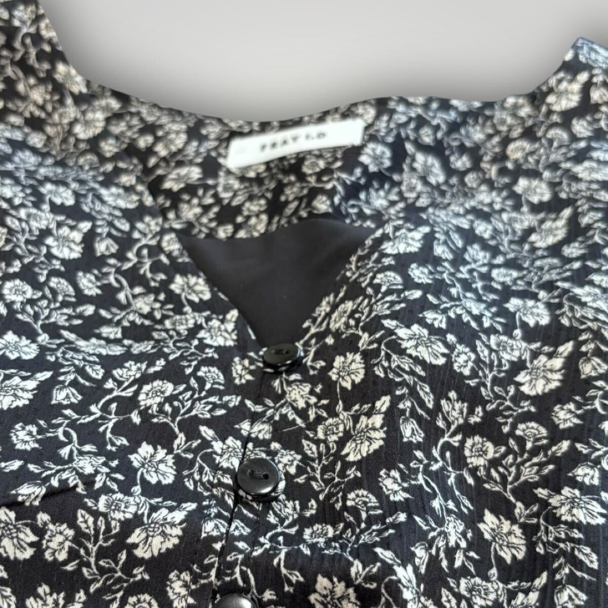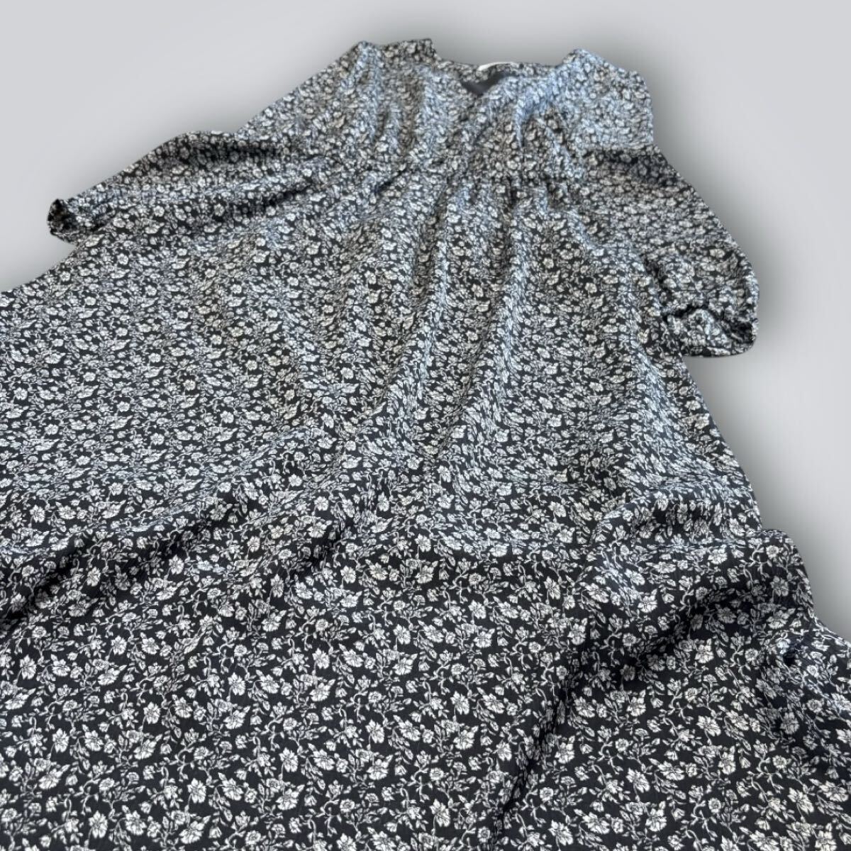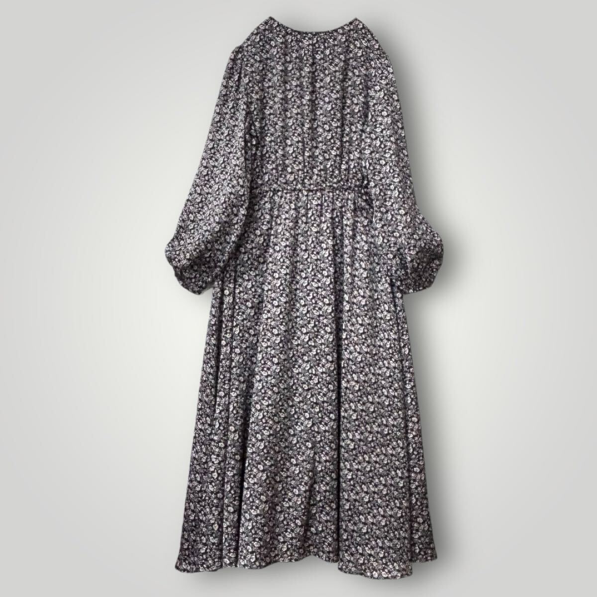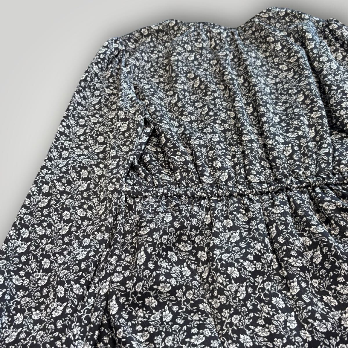 ブラック系 小花柄 総柄 プルオーバー ウェストゴム ゆったり
