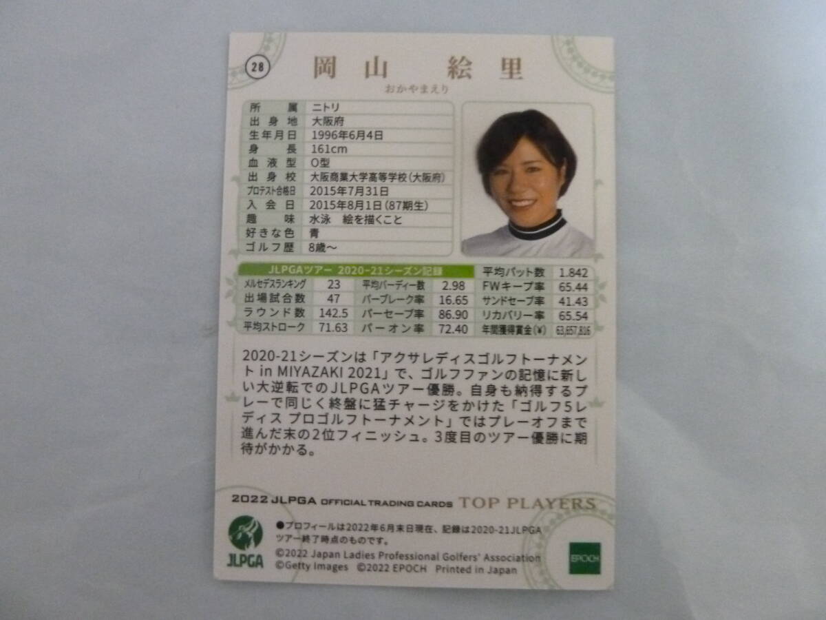 女子プロゴルフ 岡山絵里プロ 直筆サイン入り2022 JLPGAオフィシャルトレーディングカード TOP PLAYERS 激レア JLPGA ラスト1品!