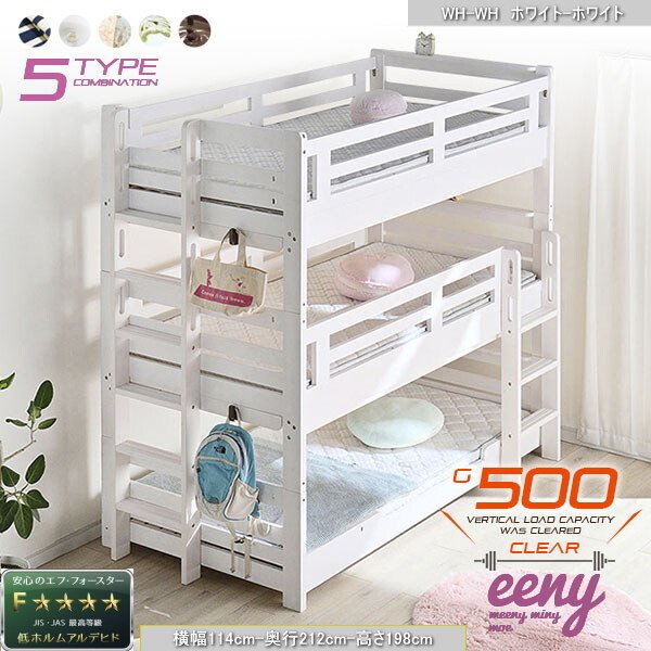 | タイトル | 3段ベッド イーニー 送料無料 大人も使える 業務用 耐荷重500㎏構造 フラット仕様 2段に分けて使える WH-WH ホワイト-ホワイト |