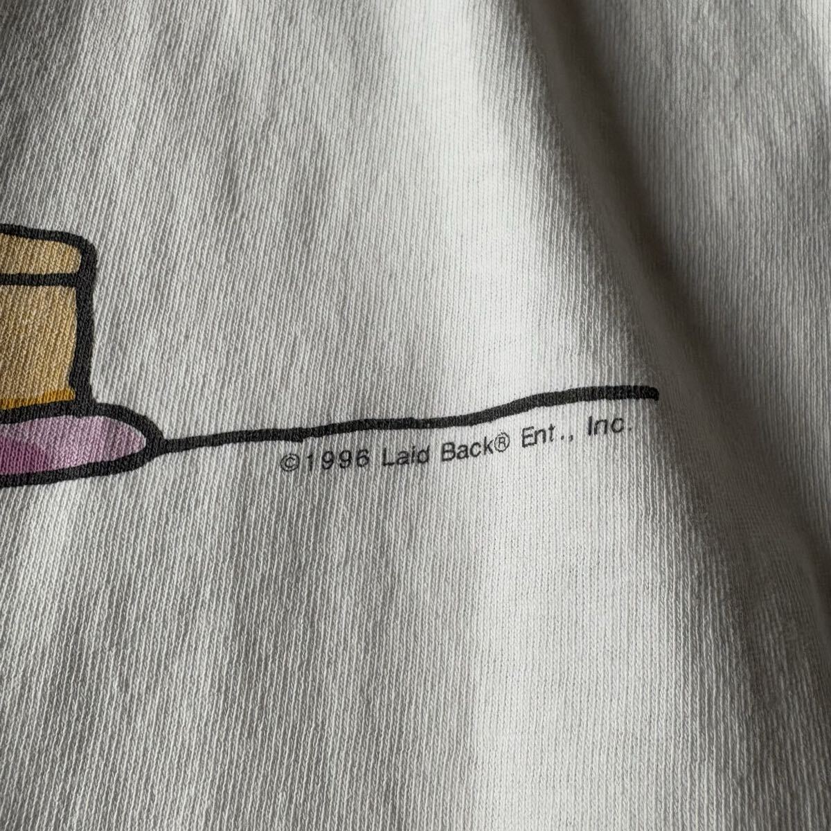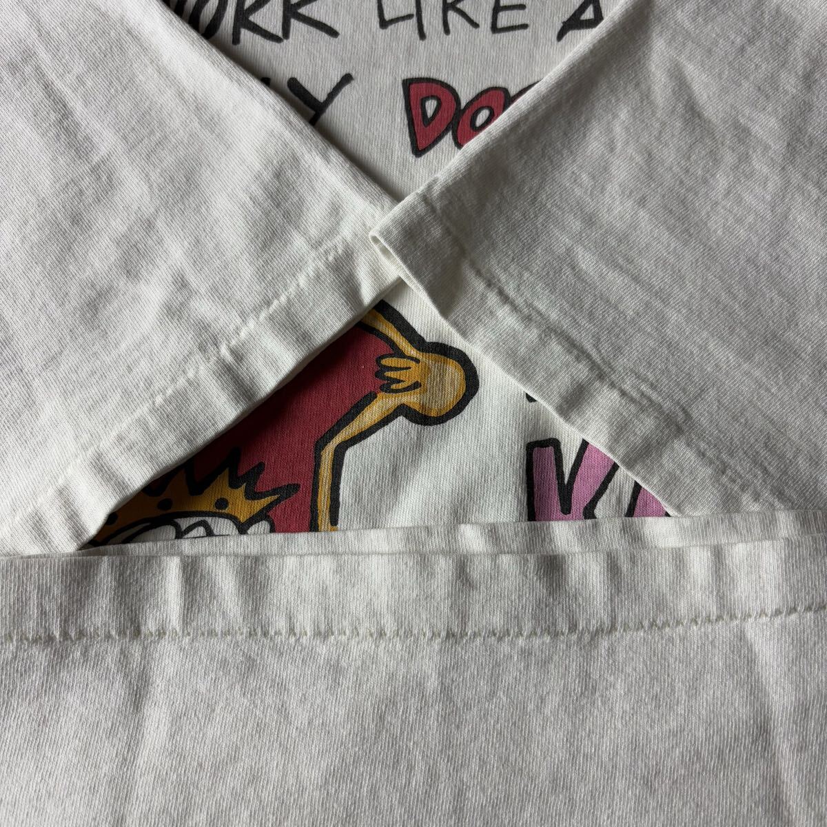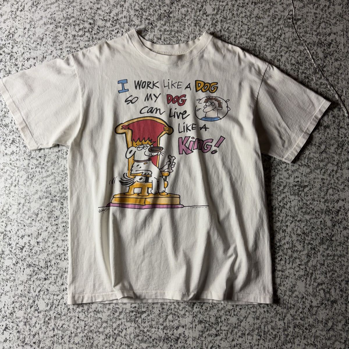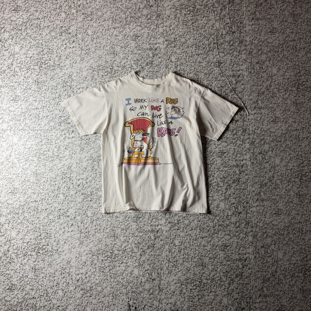 【90sオールド】イヌ イラスト メッセージ シングルステッチ ヴィンテージT ホワイト Lサイズ 古着  半袖 Tシャツ キャラクター