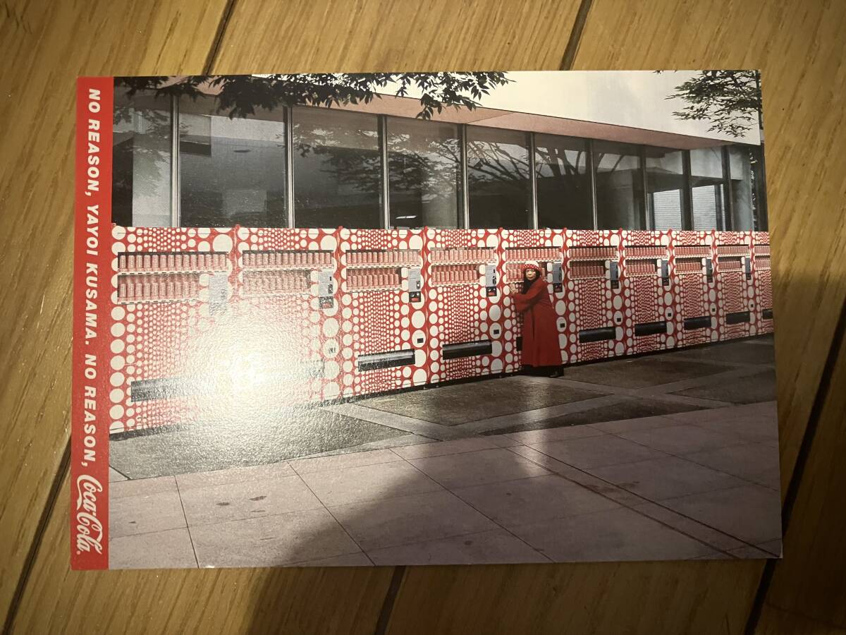 草間彌生 ポストカード 草間弥生 2001のコカコーラ コラボの非買のカードです、25年前に・・・・都内のコーラ自販は草間さんの水玉になっていましたよ☆このポストカードはヤフオクに出ないと思います、草間さんのファンの方、大切にしてくださる方、宜しくお願いします・・・貴重です:☆サイズ>縦10.5cmX横15cmの出品です★綺麗に保管しておりましたのでご安心くださいませ*デジタルカメラによる撮影になりますが、PCの環境や撮影時の光の反射具合など微妙に色が違うかもしれませんが、ご了承ください。発送後はノークレーム、ノーリターン 払い戻しナシ(注)〈2回書きます>★いかなる場合でも・・ (返金)払い戻しナシ(注)となります★発送後はノークレーム、ノーリターン 払い戻しナシ(注)となります。品物について気になることがあれば入札前に質問をください★大切にしてくださる方 宜しく御願いします♪CDはサイズの比較になりますのでお送りしません★