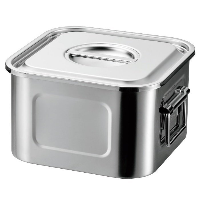☆キッチンポット浅型角取手付約21X21cm蓋ツマミ付引掛金具付1個