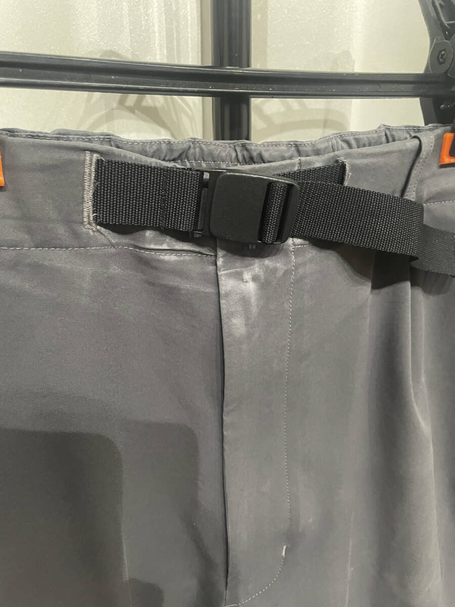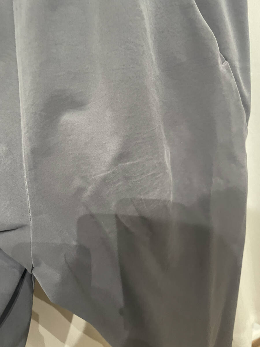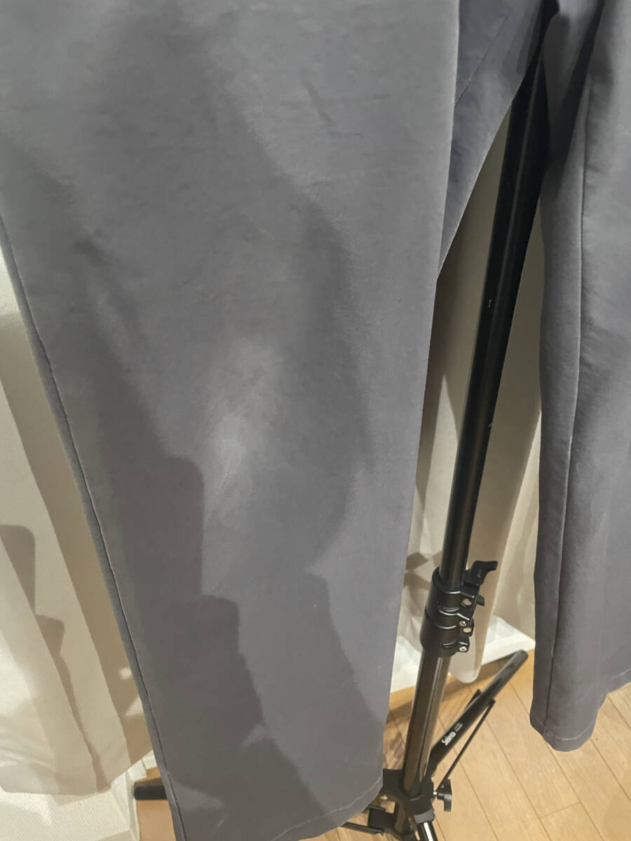 写真1枚目 ウエストあたりあります。右足側の膝に薄いあたりあります。