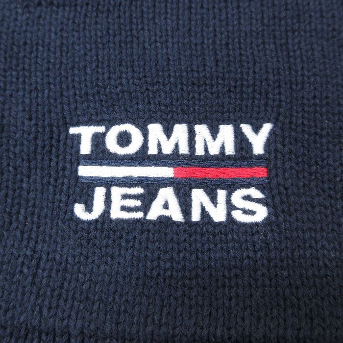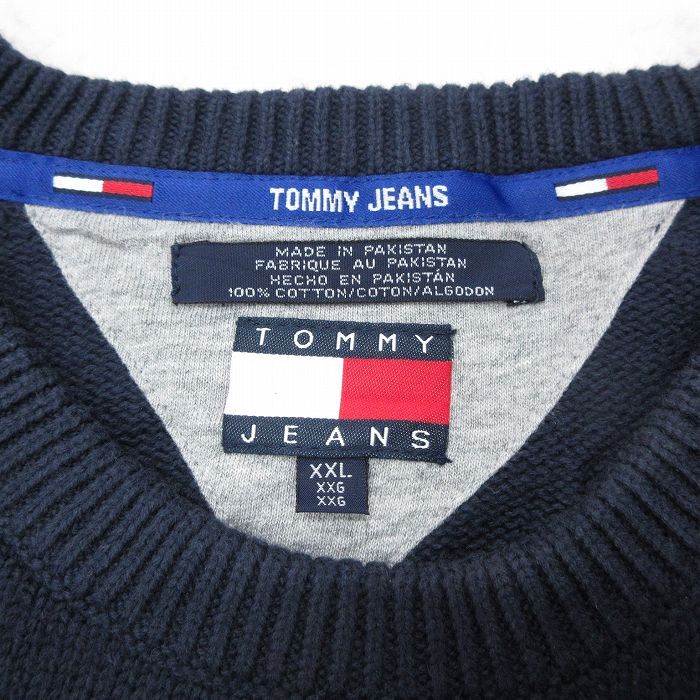 【商品名】 XL★古着 トミーヒルフィガー トミージーンズ 長袖 ブランド セーター メンズ 90年代 90s ワンポイントロゴ ラグラン 大きいサイズ コットン クルーネック 濃紺