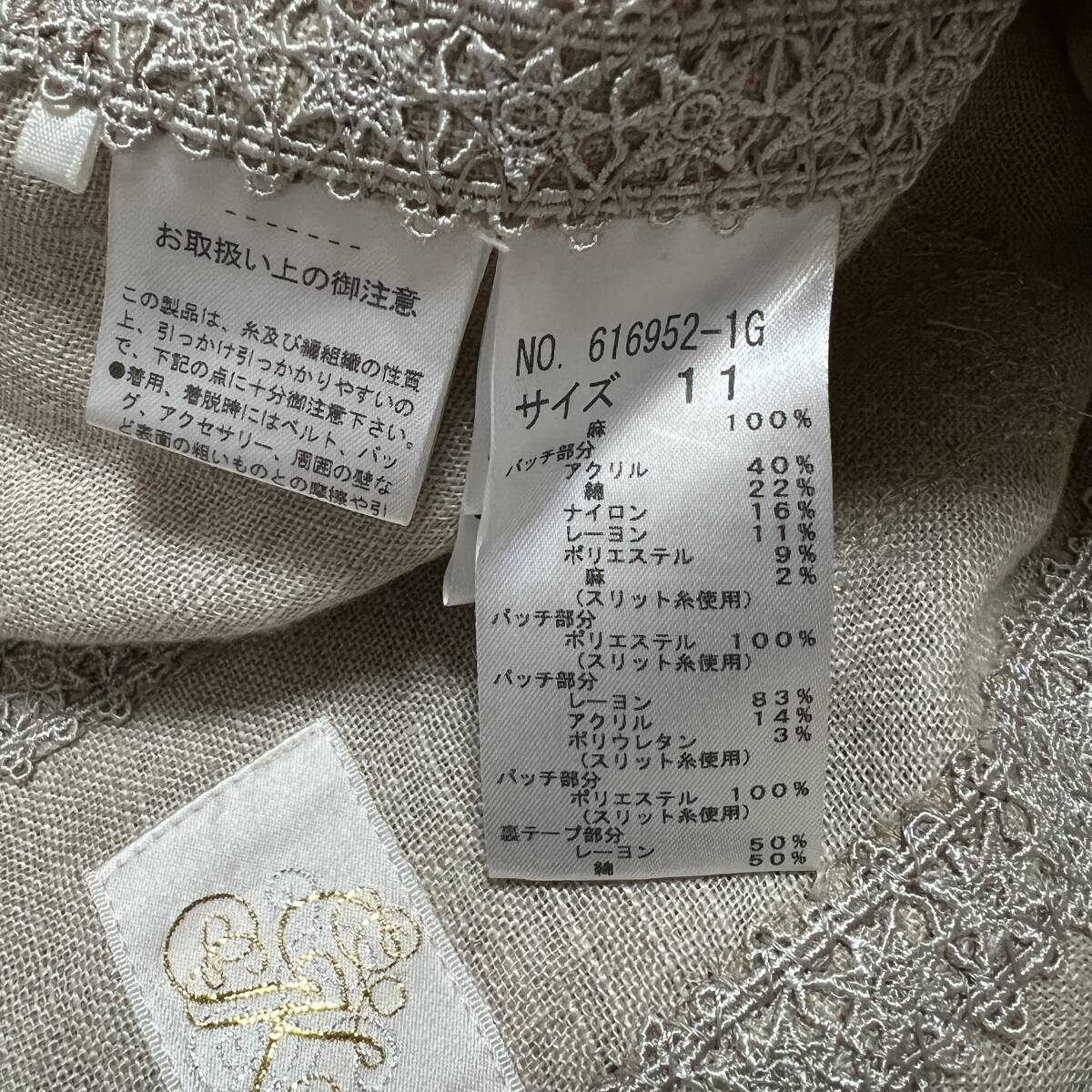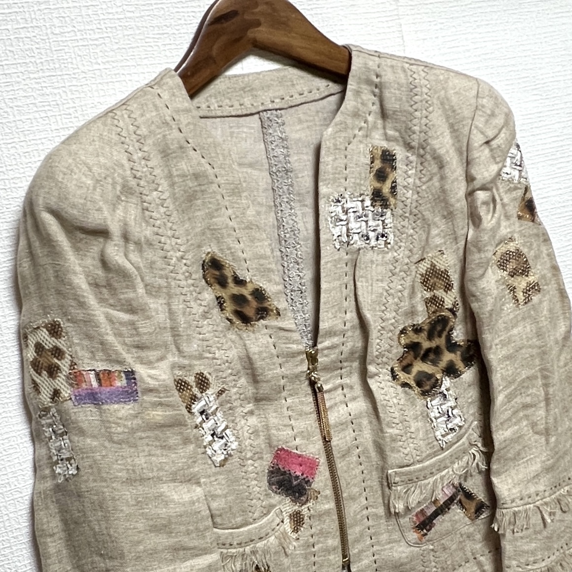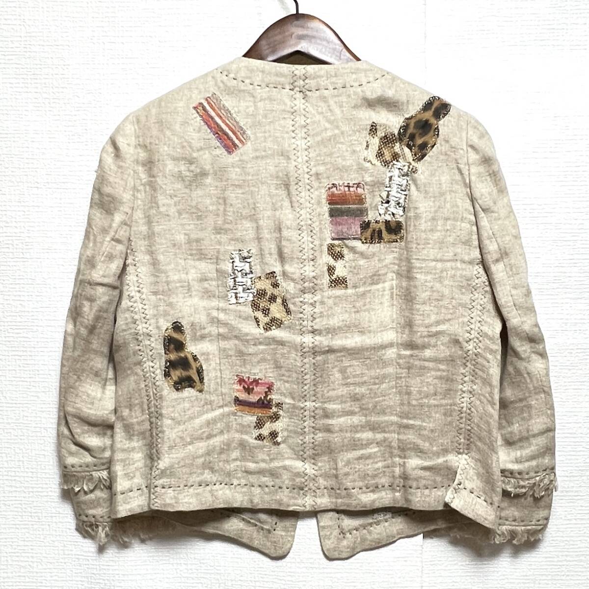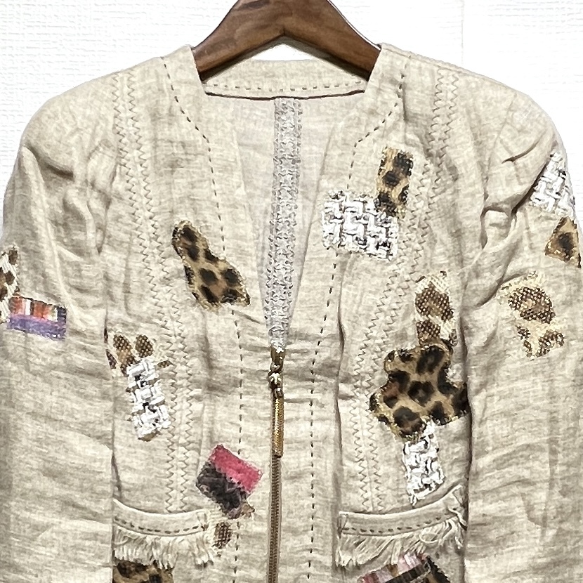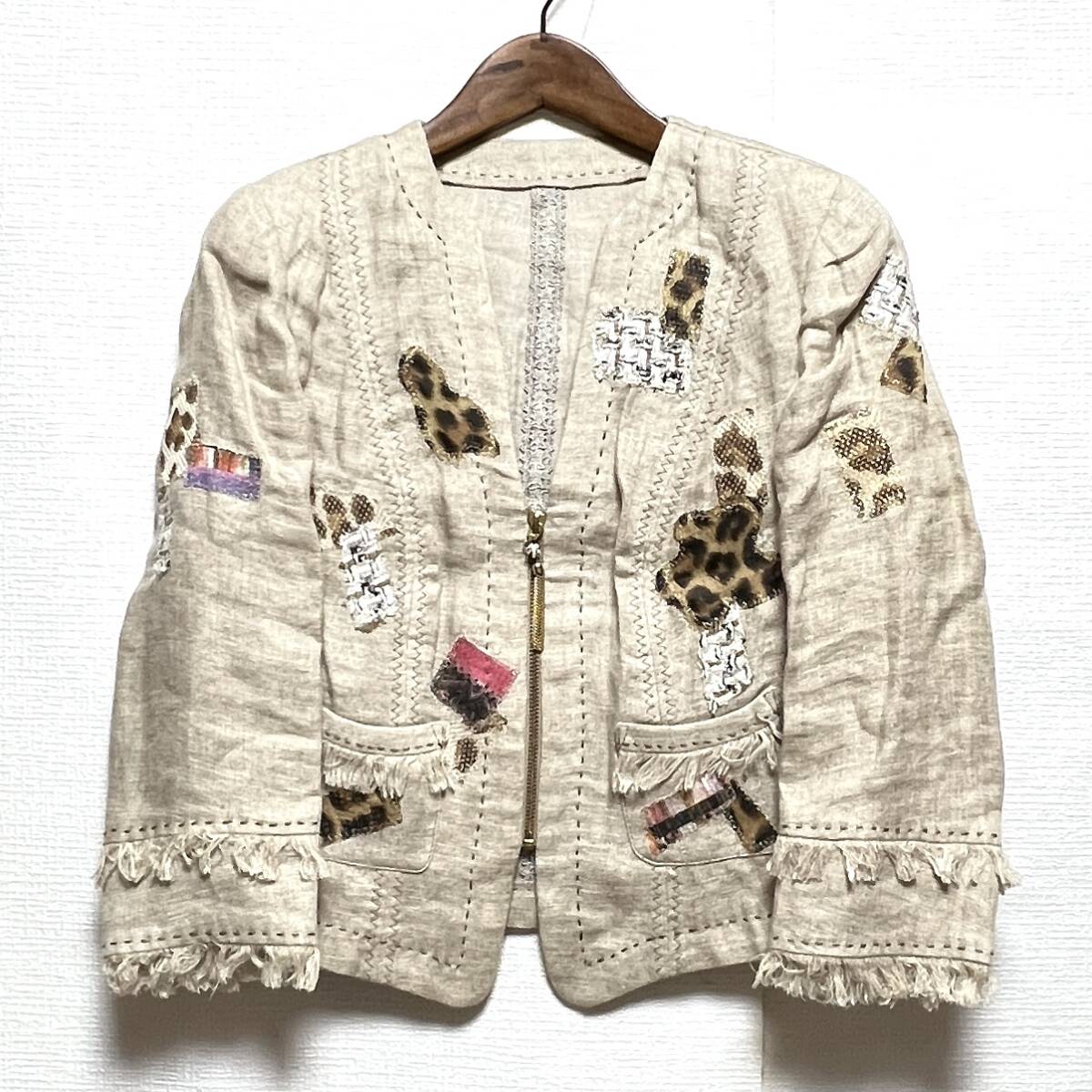 イタリヤ 伊太利屋 レディース ジップアップ 麻 ジャケット ベージュ系 サイズ11 レターパック可 (897600) * 商品説明 * ・表記サイズ: 11 ・色: ベージュ系 ・素材: 麻 100%、 ・実寸サイズ(単位cm): 肩幅38、胸囲51、着丈50、袖丈47、 *平置き採寸となります。 ・商品状態: 素材が麻のためシワが多く見られます。全体的に状態は良好です。 | ||||||||