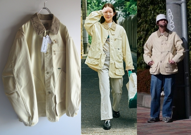 エルエルビーンのアイコンとして世界で愛されるフィールドコート。1924年に初めてハンティング用コートとして紹介され、100年以上の歴史を持つ”Bean's Field Coat”その”Bean's Field Coat”の素材とシルエットをアップデートした”Bean’s Prospect Harbor Field Coat ”です。素材には従来のコットンキャンバスではなく、特殊な異形断面のポリエステル糸〈S Fiber〉を使用したオリジナルファブリック〈TEC DUCK〉を使用。糸自体が均一な太さではなく乱雑な形状をしている為、非常にマットでコットンのような表情とナチュラルなタッチ、コットンダックにはない軽さが特徴です。更に、織り上げた生地に特殊なプリントを施し、製品でストーンウォッシュを施すことで生地表面のプリントを落とし、ポリエステルでありながらまるで着古して経年変化したコットンダックのようなフェードした表情に仕上げています。