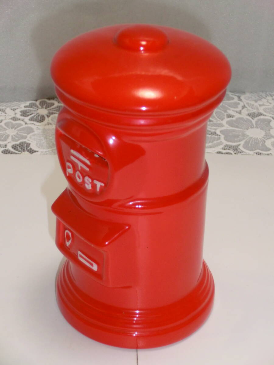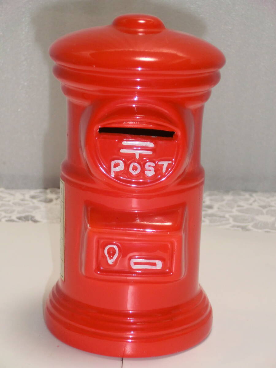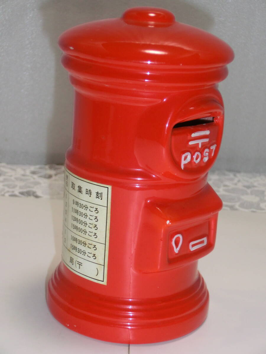昭和レトロ ★ 陶器製郵便ポスト貯金箱 14cm  当時もの ★レトロポップ