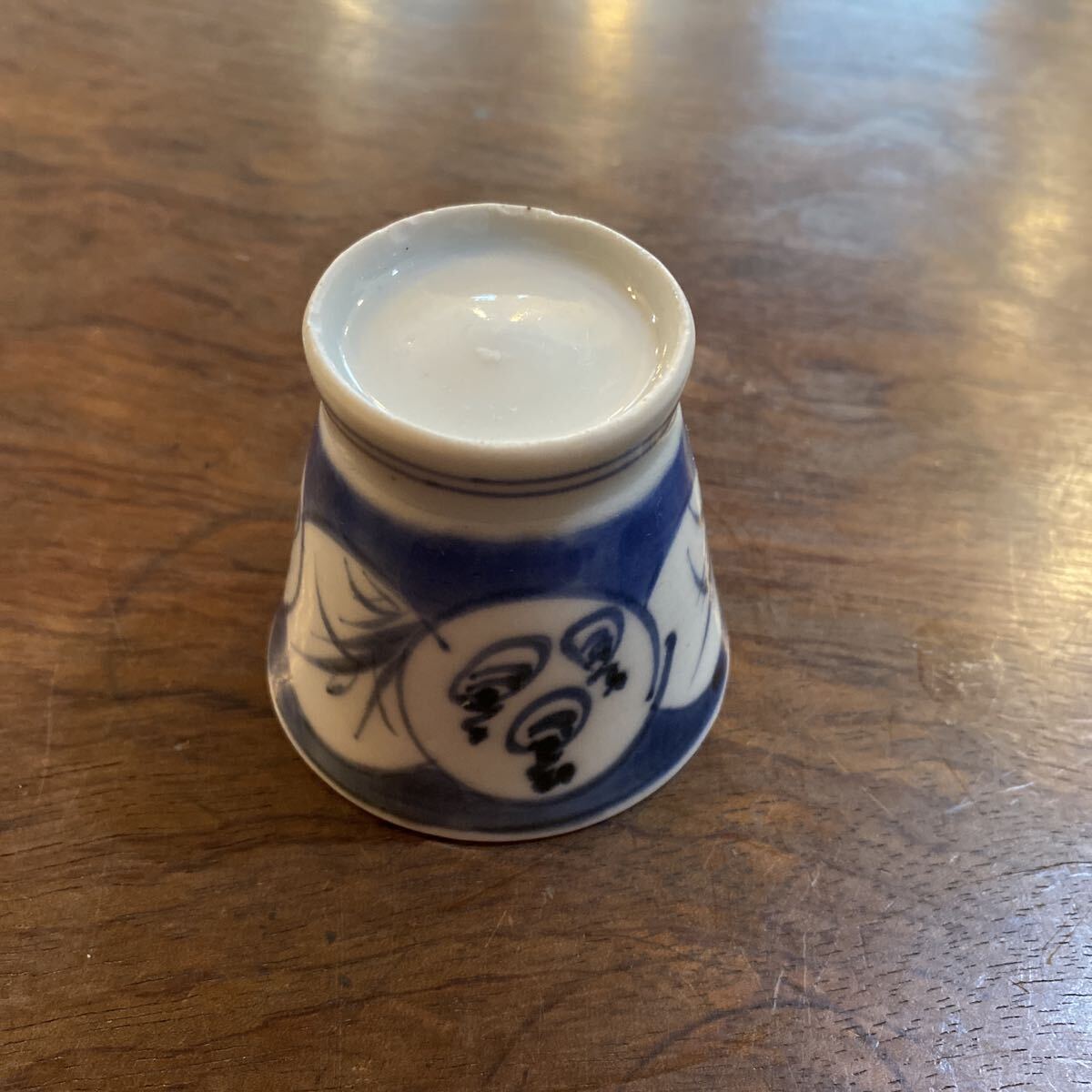 高台に薄いソゲと口外側に2ミリの小さなホツがあります