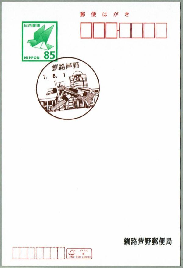 2025(令和7)年8月1日から使用開始された、風景印を官製はがきに使用開始の初日に押印。