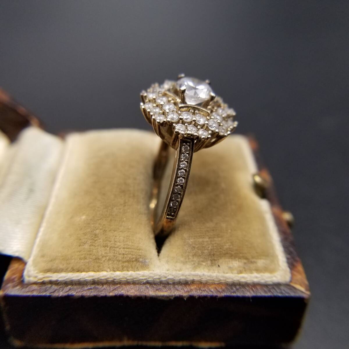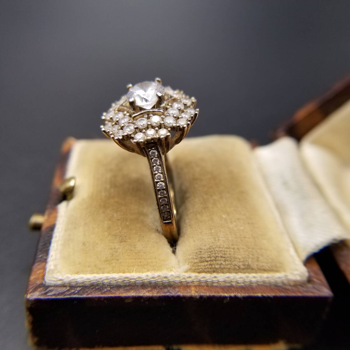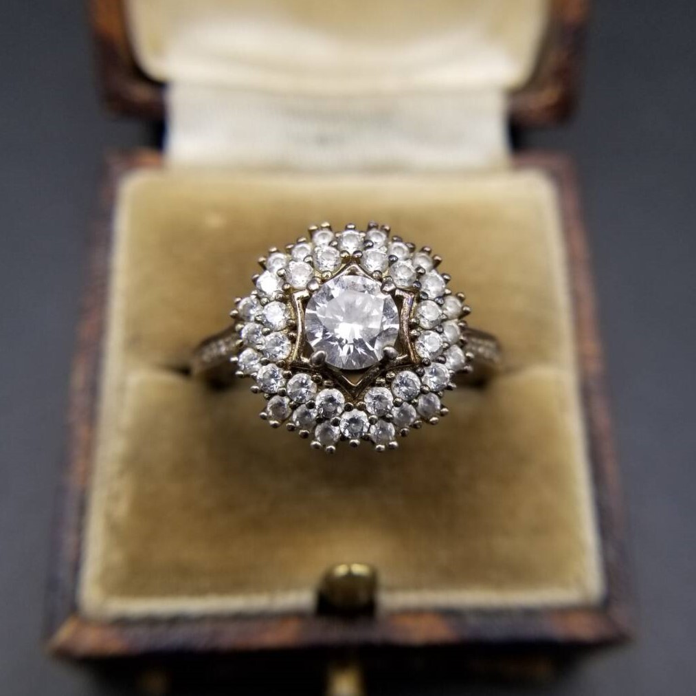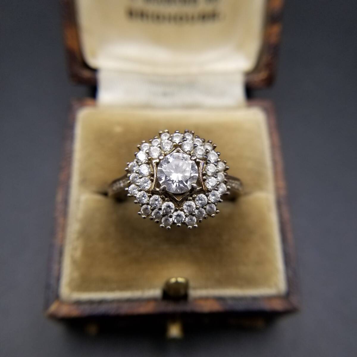 Dolce Mondo クリアストーン ラウンドカット 煌めき 925 シルバー フラワー リング 銀 指輪 ゴールドトーン ドバイ ジュエリー Y24-L