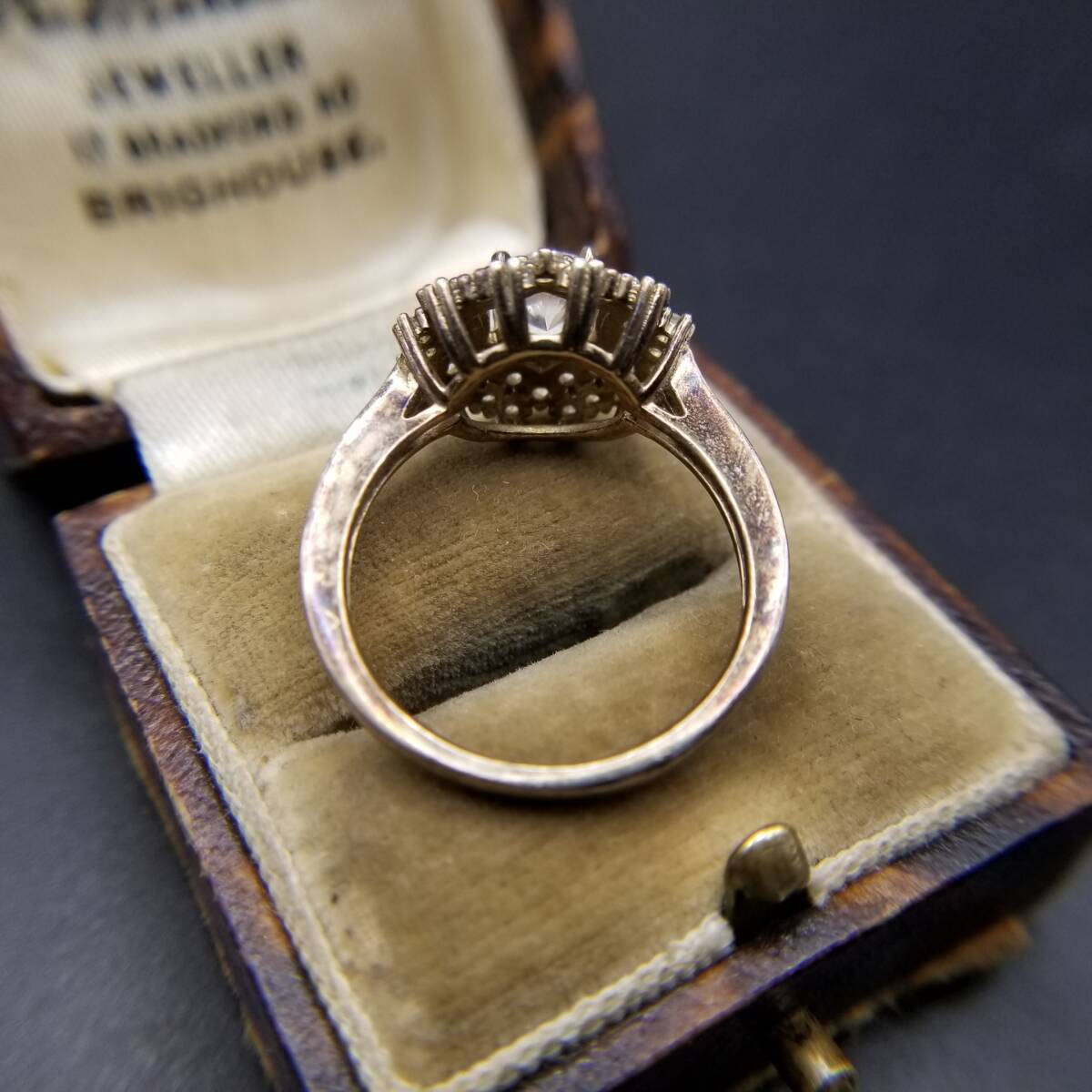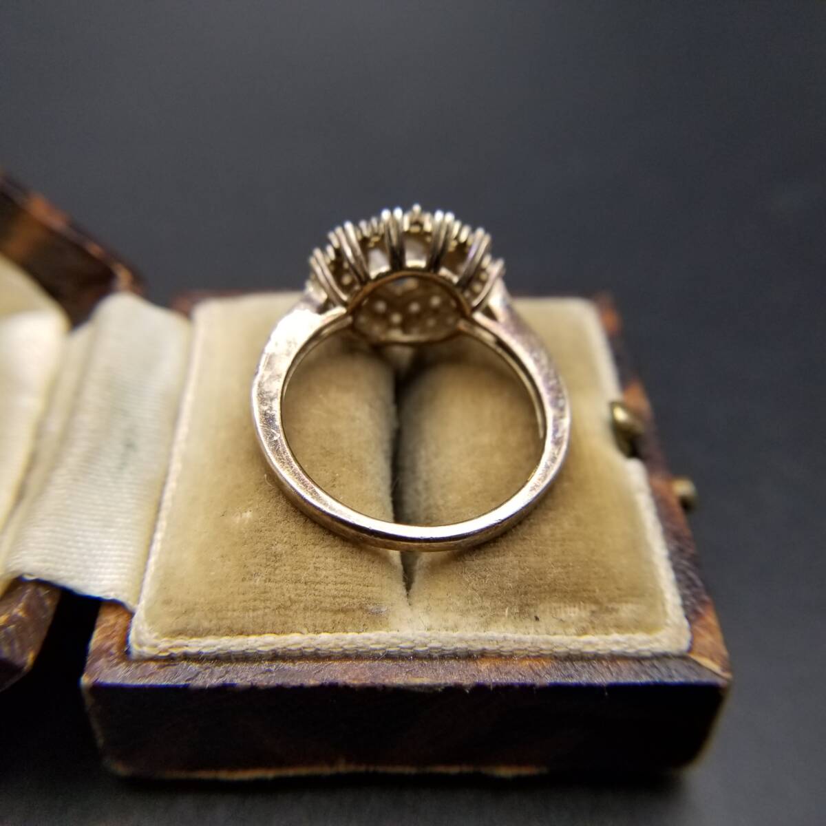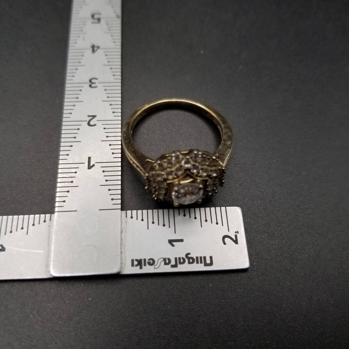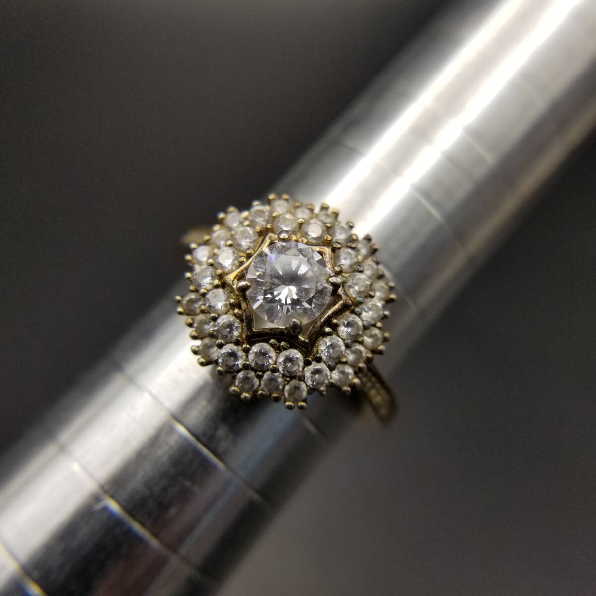 Dolce Mondo クリアストーン ラウンドカット 煌めき 925 シルバー フラワー リング 銀 指輪 ゴールドトーン ドバイ ジュエリー Y24-L