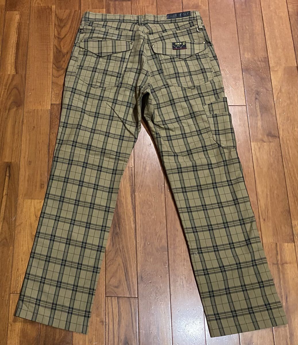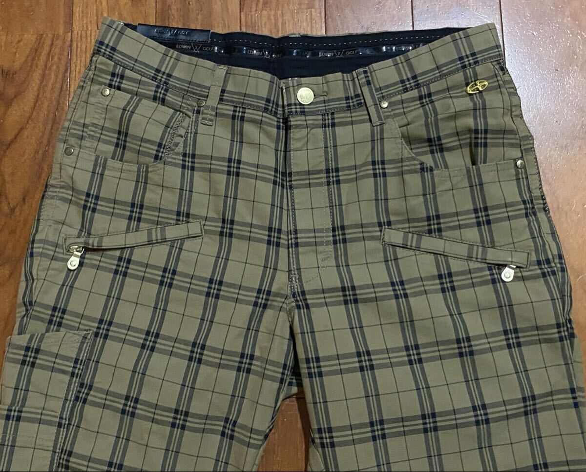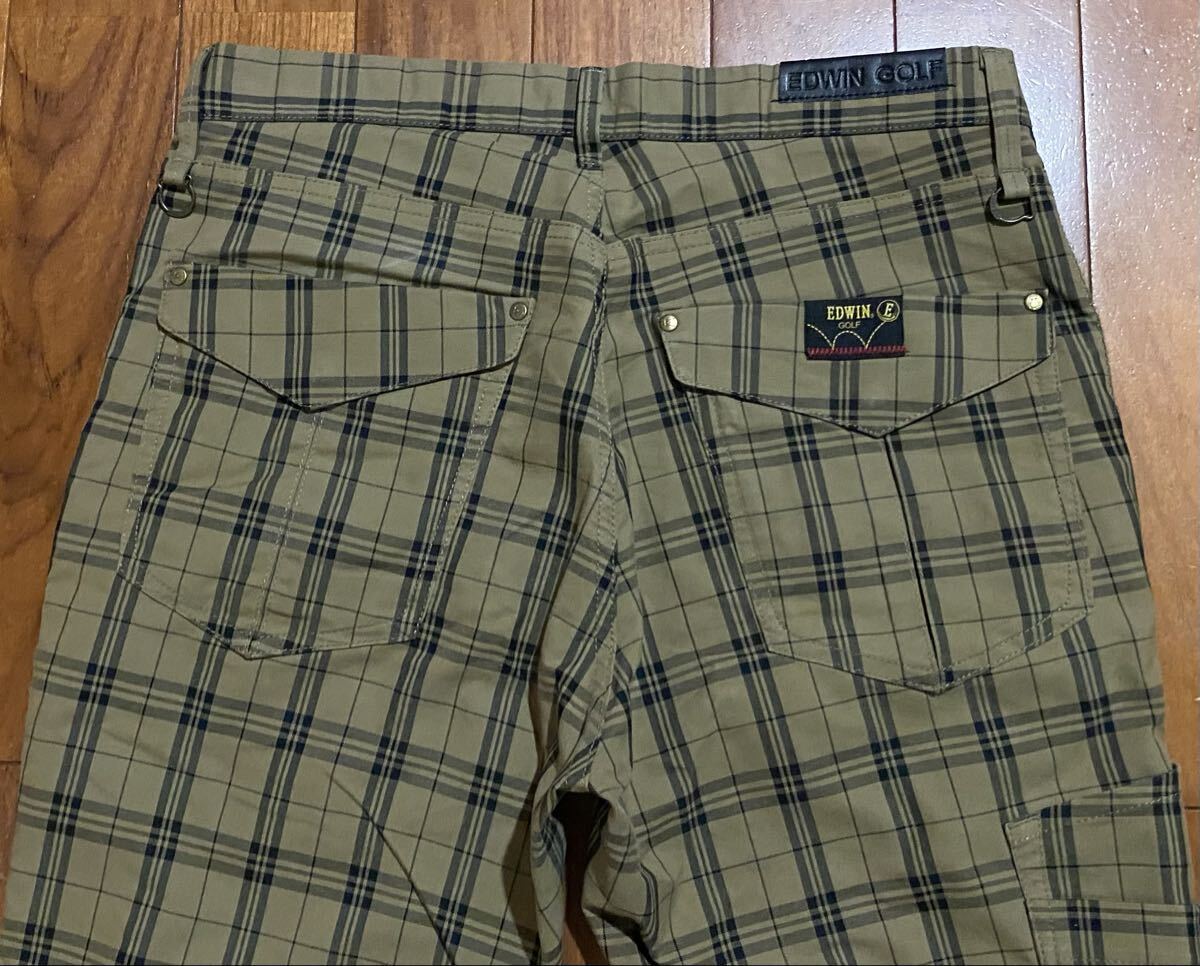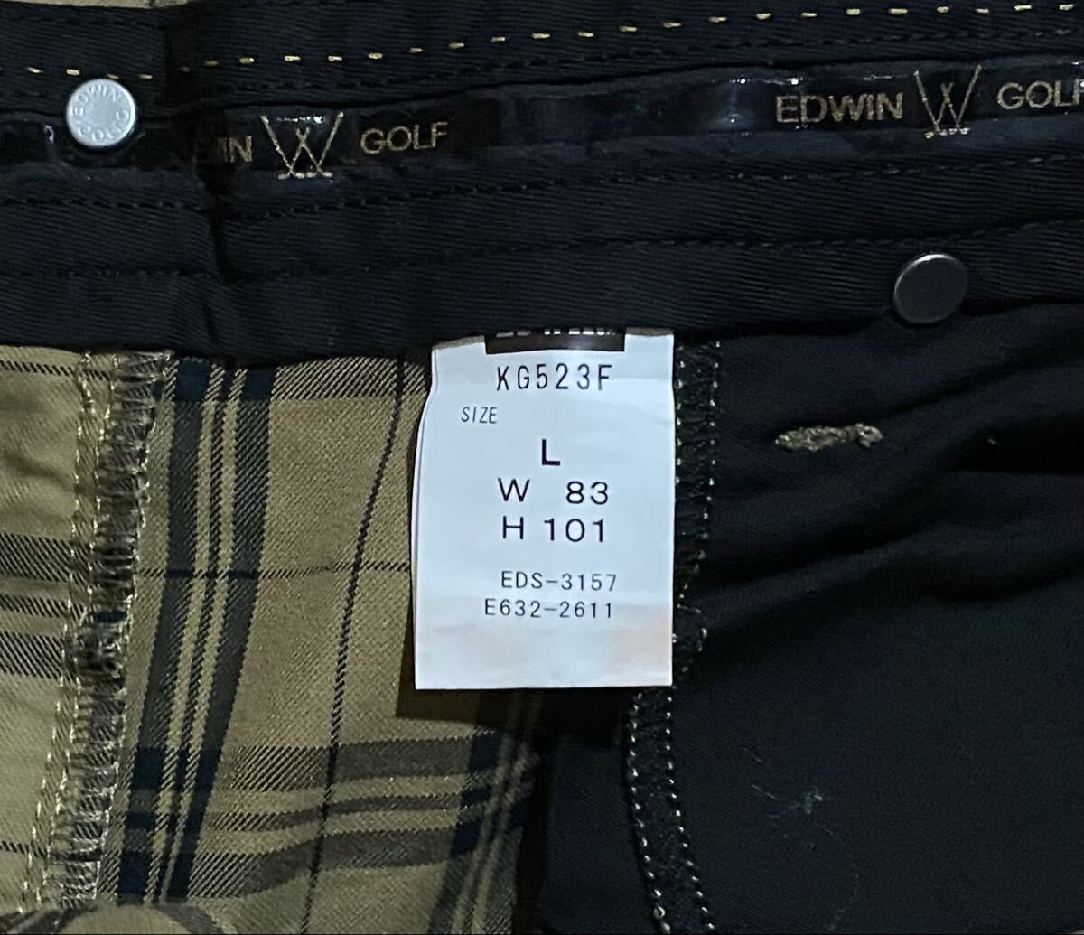 エドウィン ゴルフのストレッチパンツ、KG523Fです。USEDですが状態は良いです(10段階中8程度)。生地はストレッチ入りで綿64%、ポリエステル36%です。ジッパーフライです。正規品です((株)エドウィン、中国製)。サイズはL(W83 H101)でウエストは重ねずに平置きで約83cm、ヒップ約104cm、股上約27cm、股下約76cm、股下15cmのふともも部分約52cm、裾まわり約41cm、重量約510gです。発送はゆうパケットポストになります。