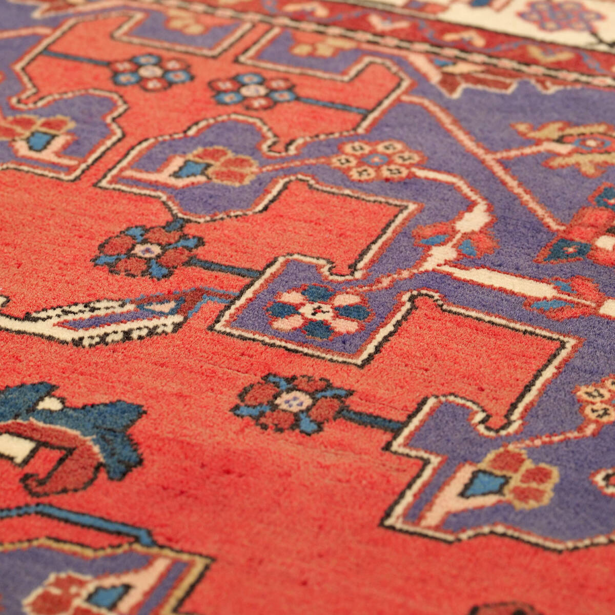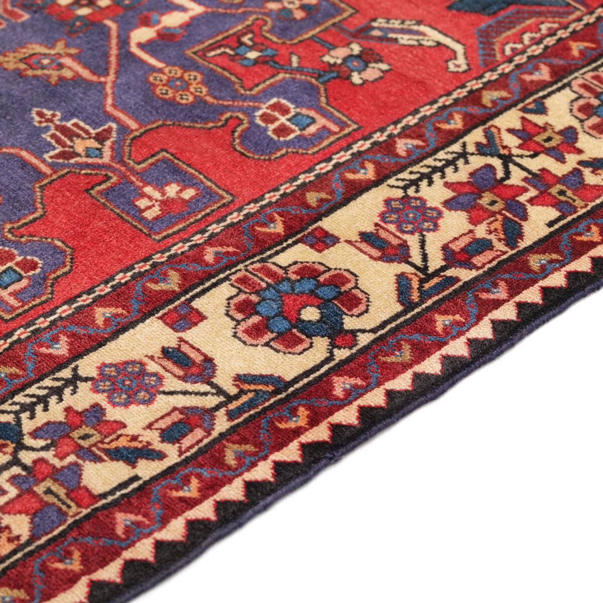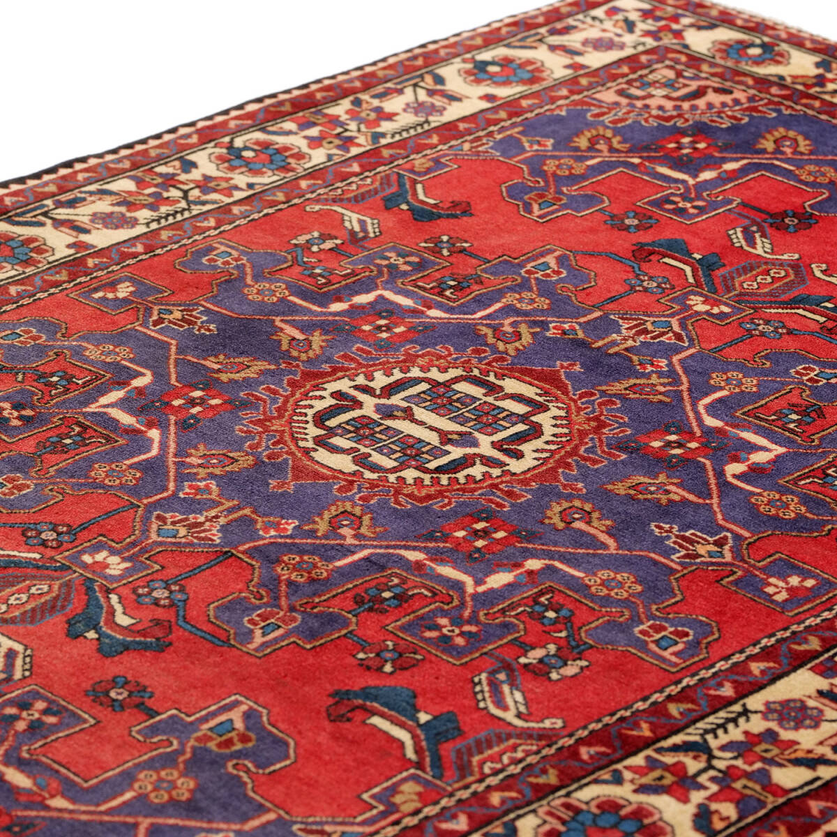 1940年代にハマダンで制作された、クラシカルな印象を持つアンティーク絨毯です。中央に整ったメダリオンが据えられ、フィールドには繊細なヘラティ文様が繰り返し配されています。