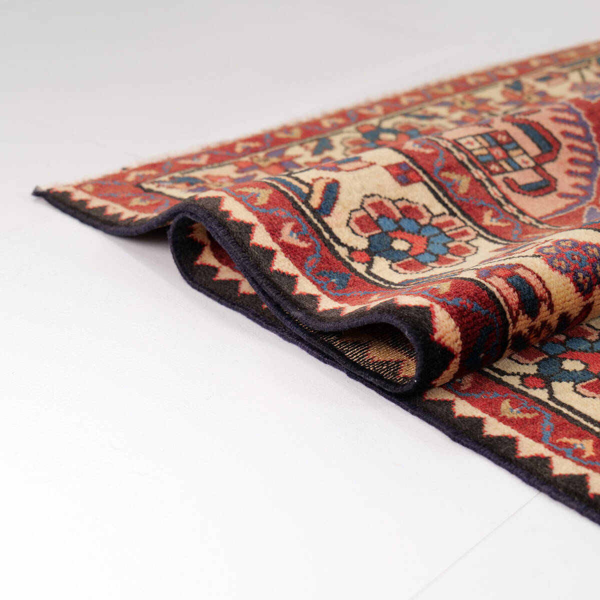 約2mの程よいサイズ感で、リビングやダイニングテーブル下、広めの書斎や寝室などにもフィットします。ウール特有の柔らかくあたたかな質感と、アンティークならではの味わいが魅力です。