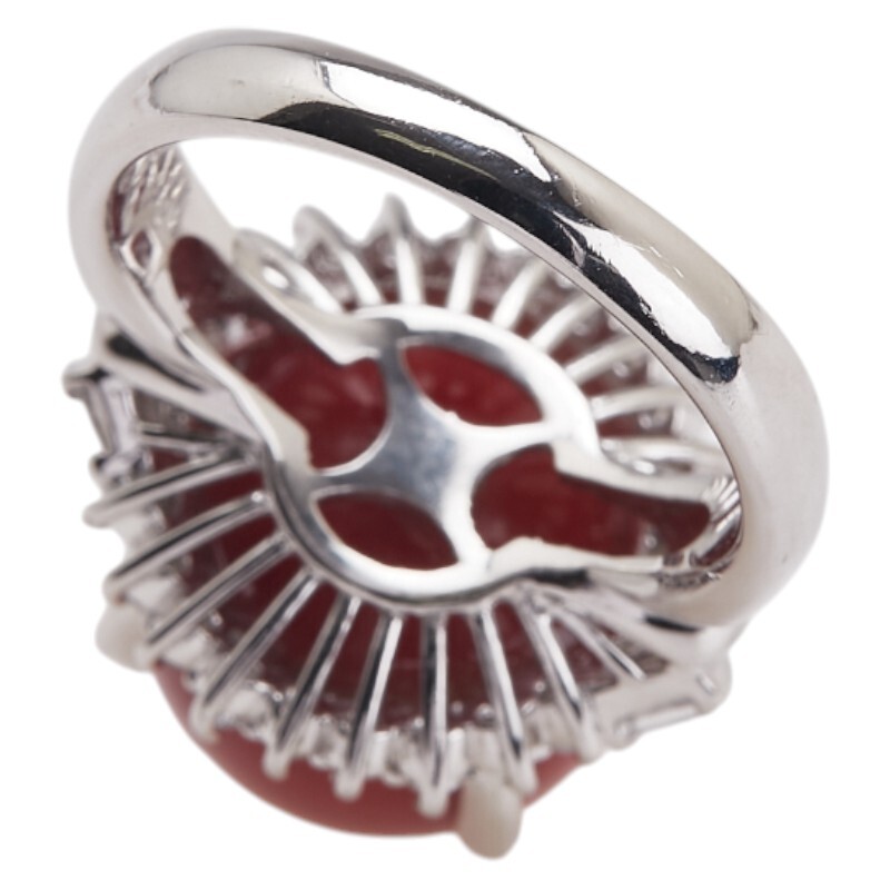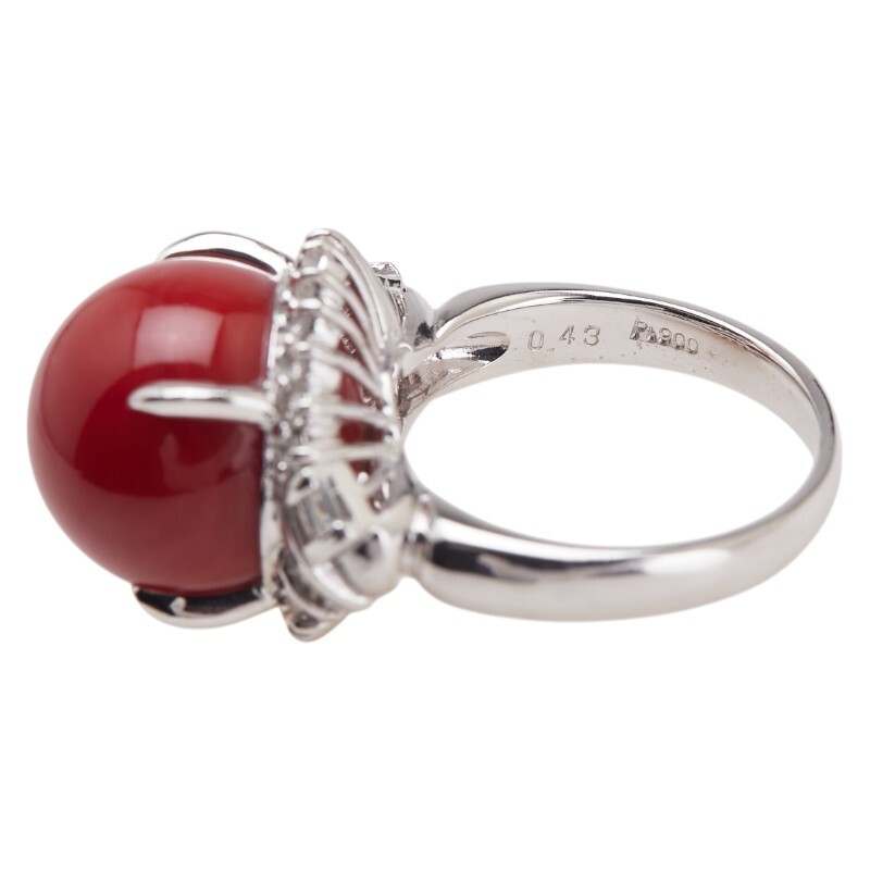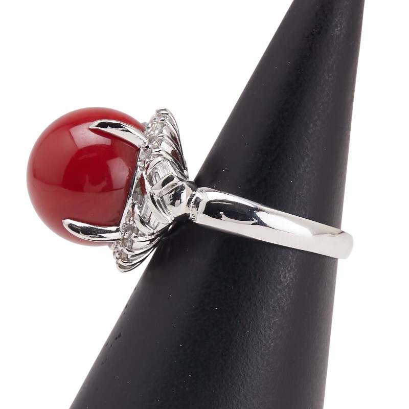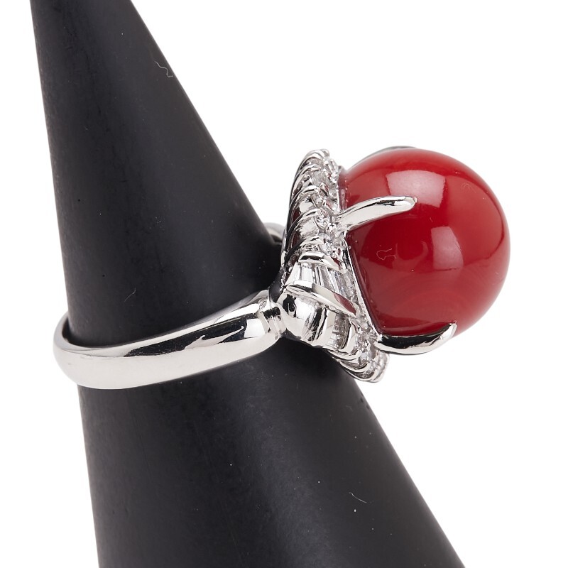 Pt900 プラチナ 赤サンゴ13.2mm ダイヤ0.43ct リング 指輪 レディース 11号 中古