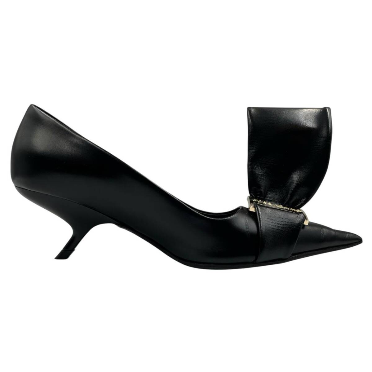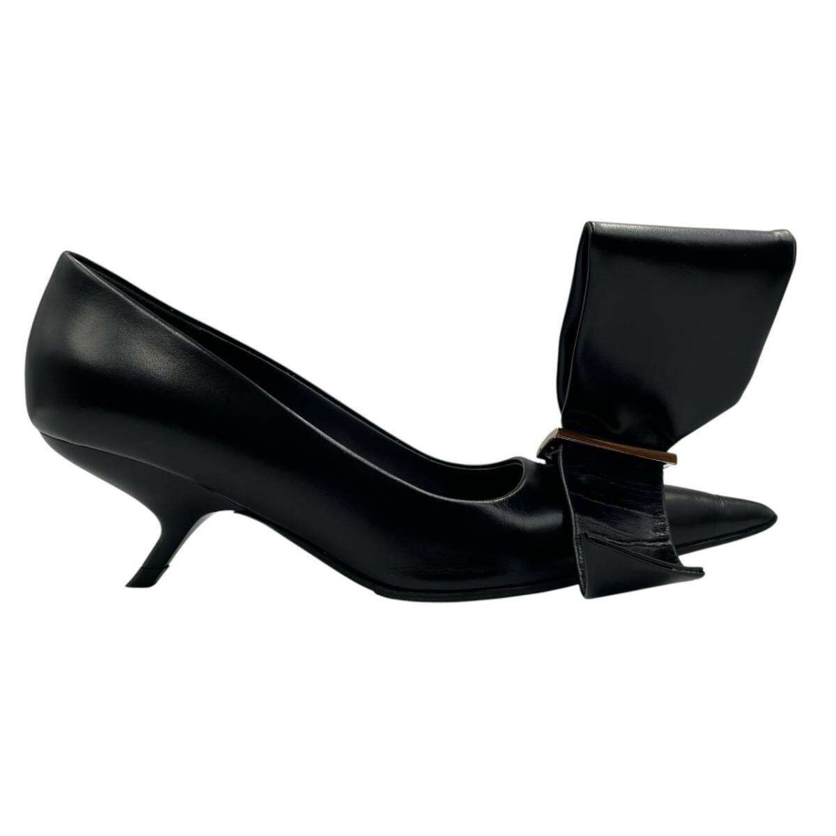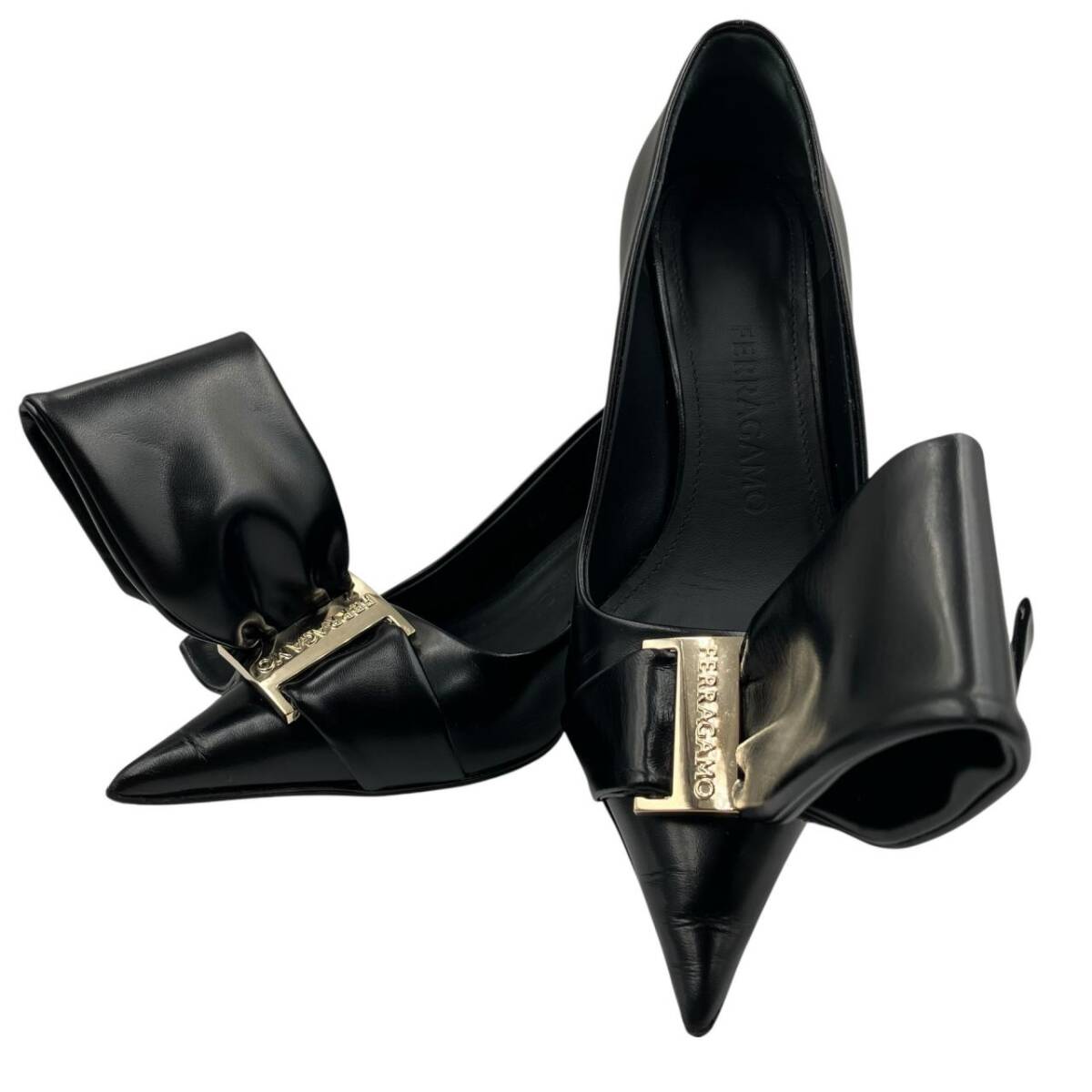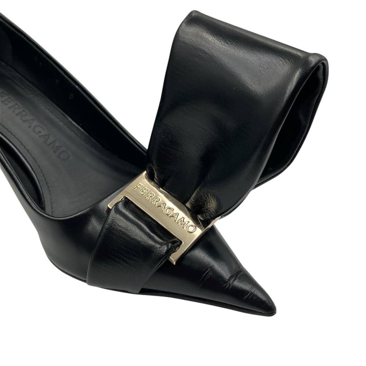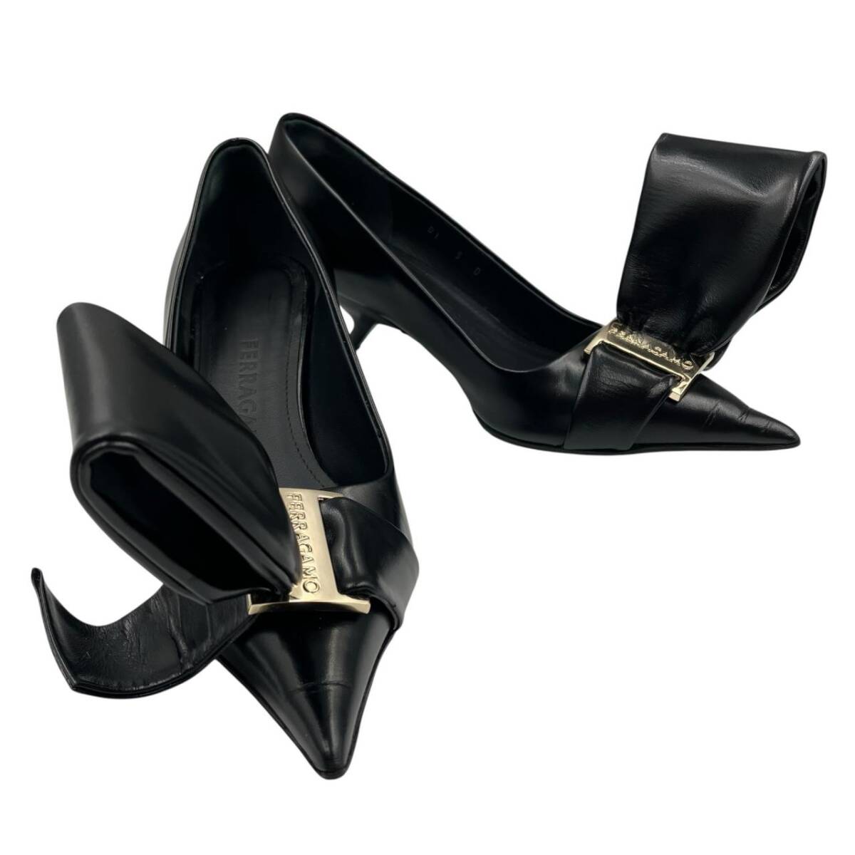 Salvatore Ferragamo フェラガモ パンプス オーバーサイズリボン ゴールド金具 レザー ブラック サイズ5D 美品 |