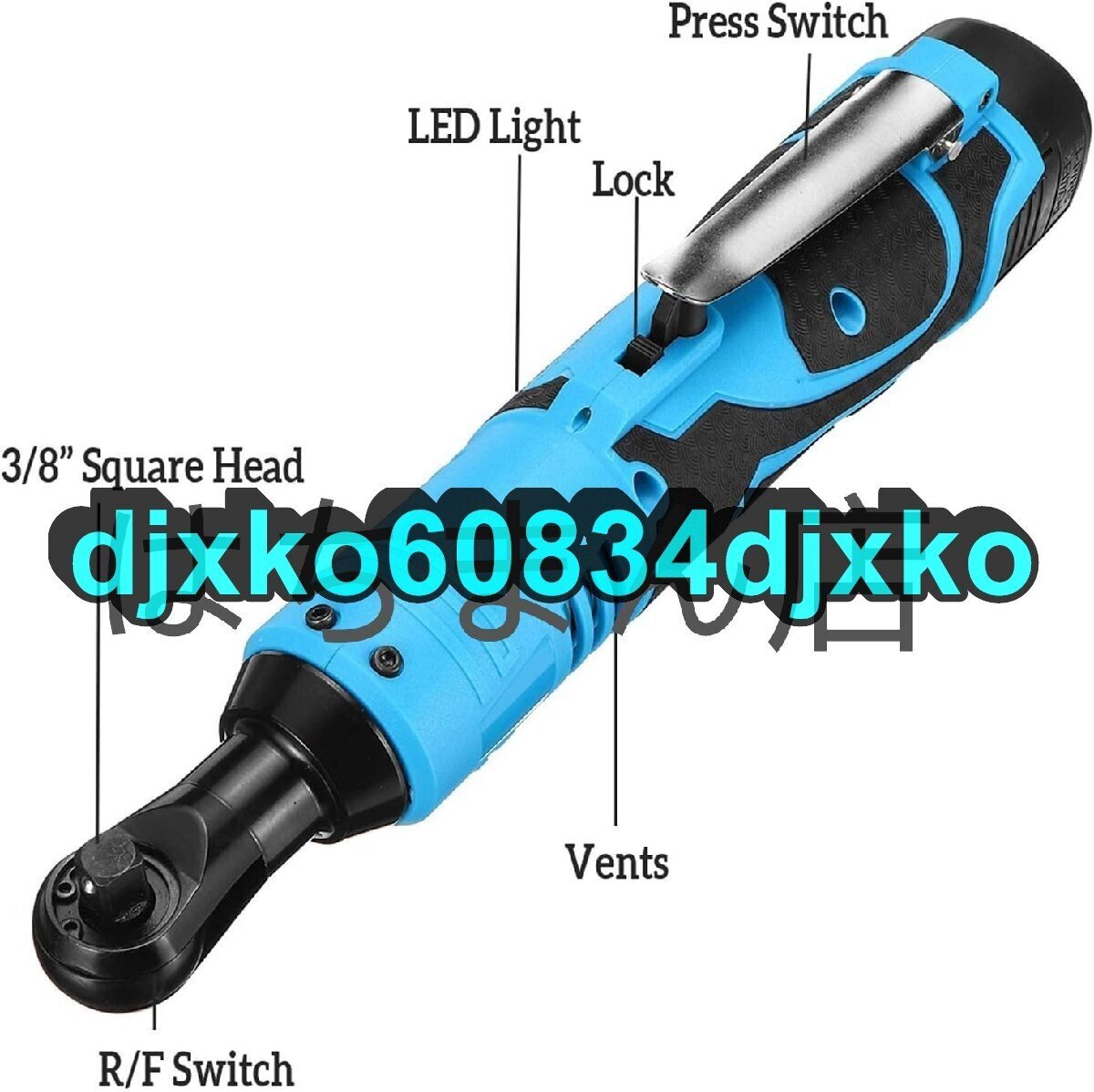 3/8充電式コードレスラチェットレンチ、18V 100N.m電動工具セット、2リチウムイオン電池、7ソケット、LEDワーキングライトデザイン
