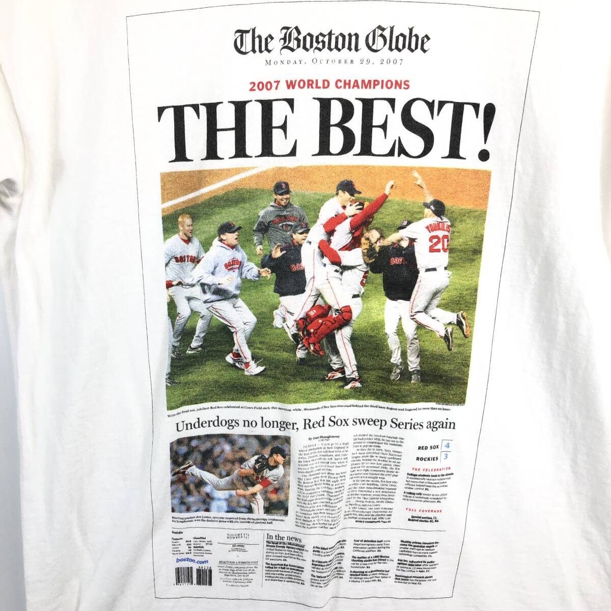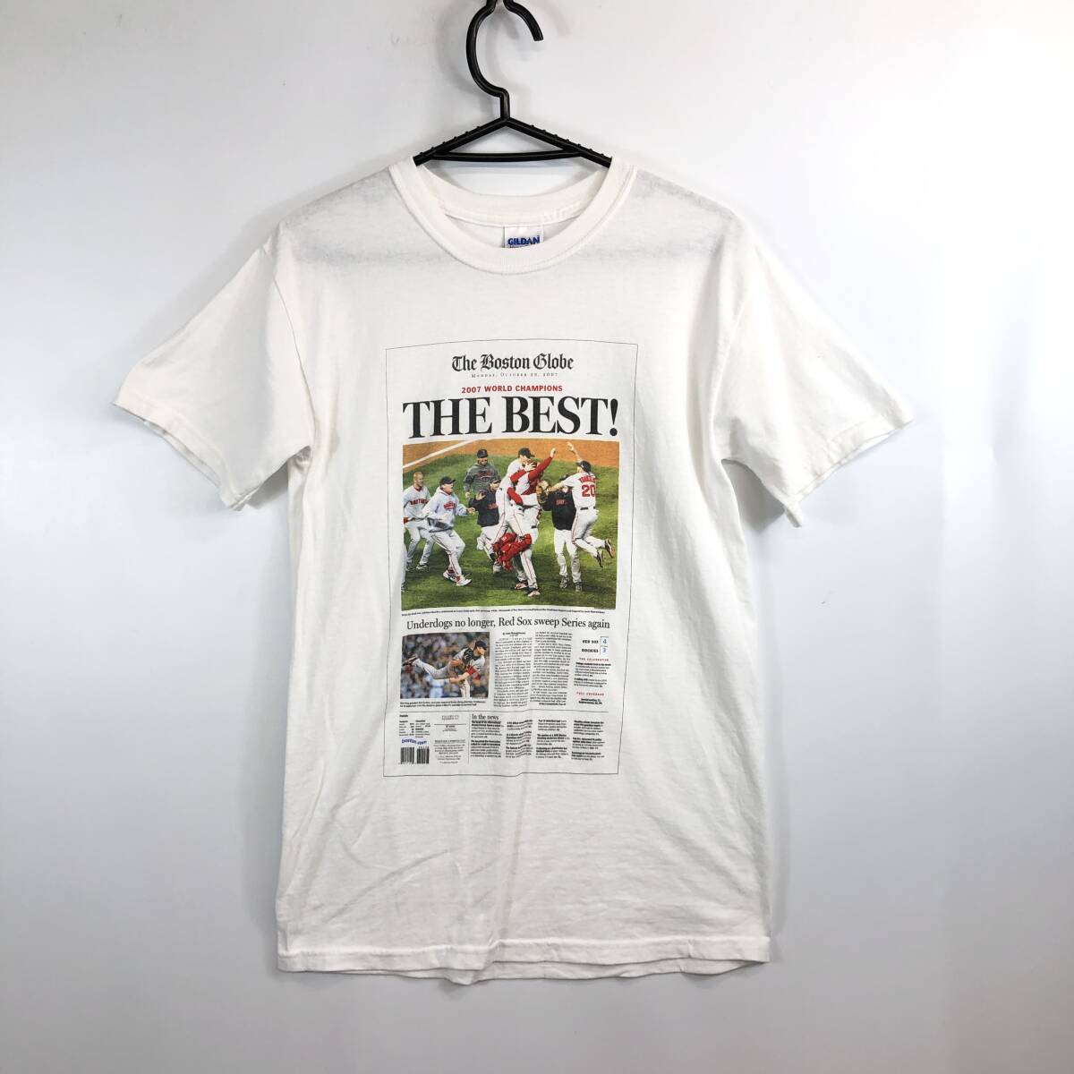 00s 2007年 ボストンレッドソックス MLB ワールドシリーズ制覇記念Tシャツ ニュースペーパーTシャツ GILDAN Sサイズ