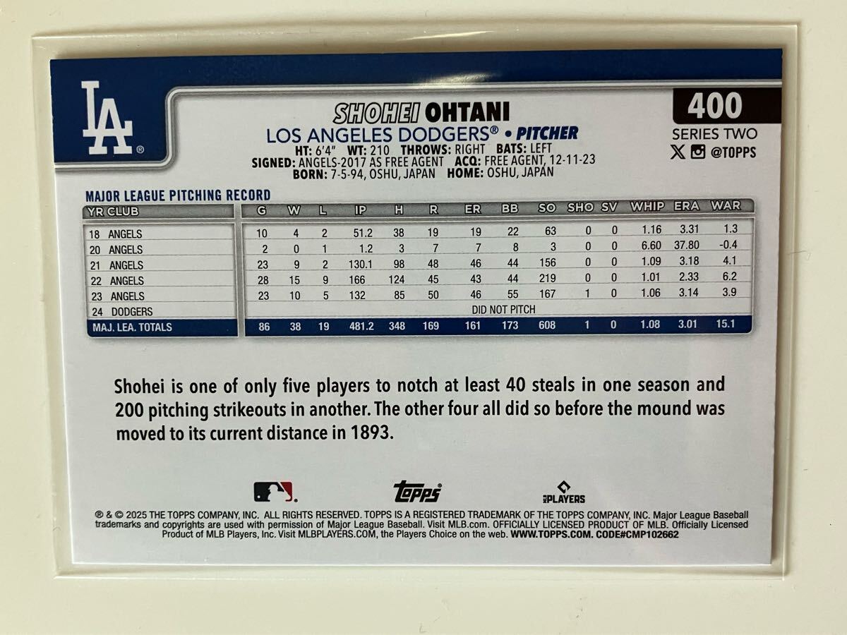 Topps MLB 2025 series2 大谷翔平 ベースカード NO.400です。