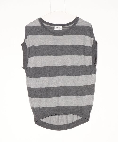 「PLST」 ボーダー柄ノースリーブトップス 2 グレー レディース