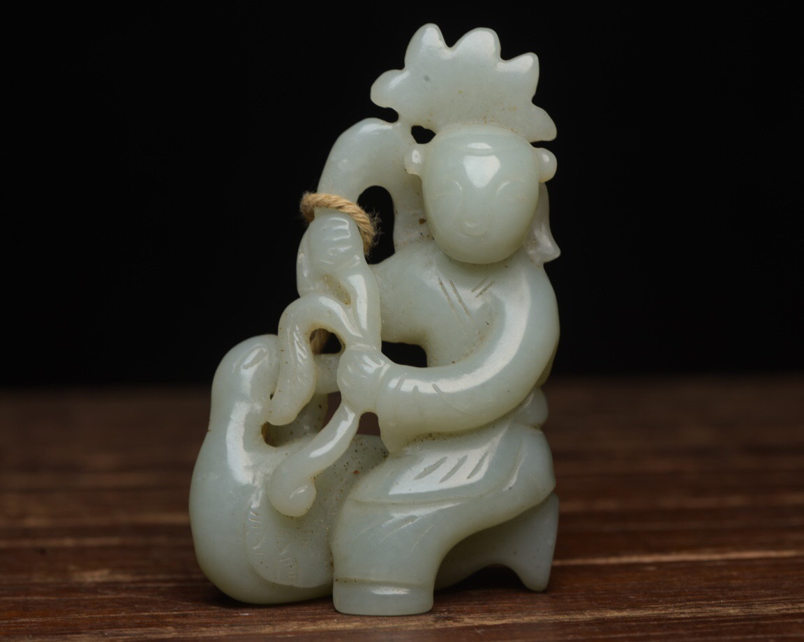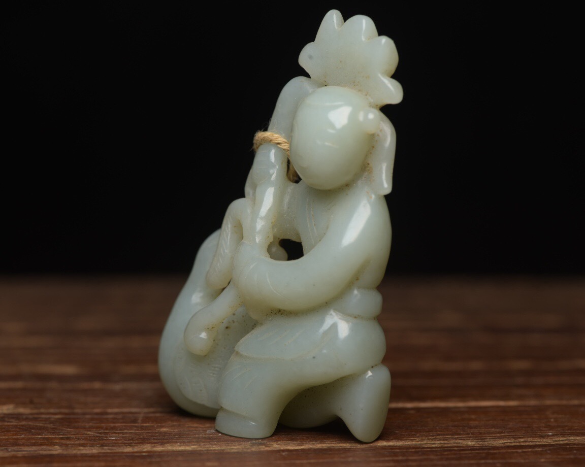 | 【蔵友館蔵品・和田玉製・細密彫・童子戲鵝・置物・賞物】・古董品・中国古玩・時代物・希少珍品・中国時代美術 |