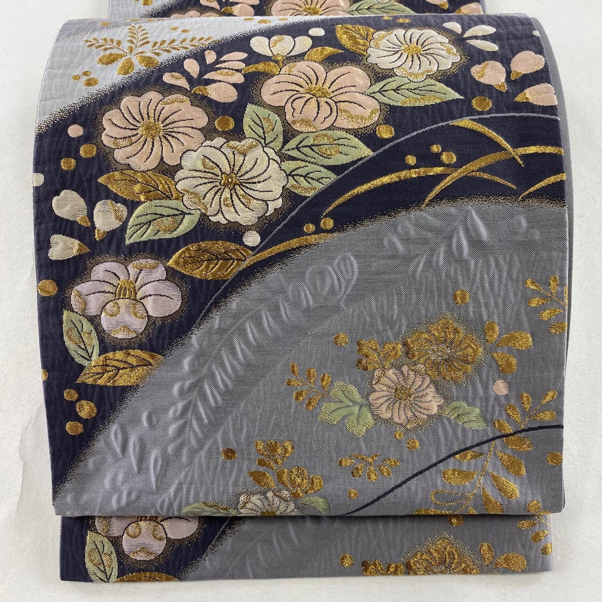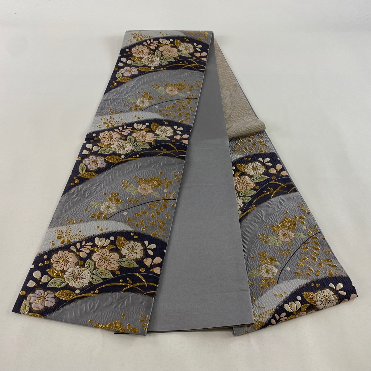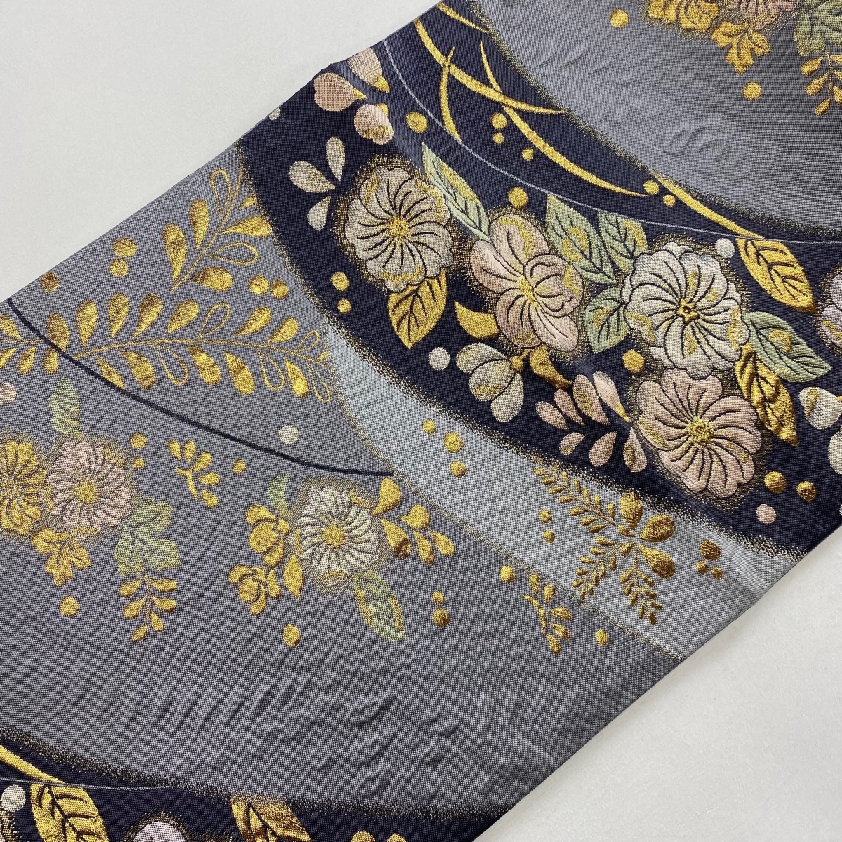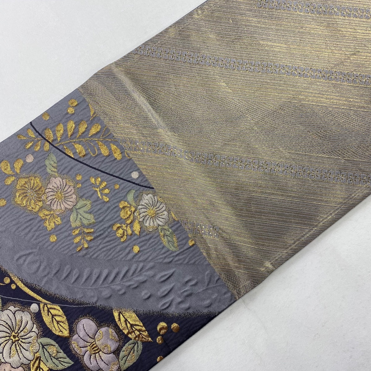 | 袋帯 美品 秀品 やまと 草花 露芝 箔 灰紫 六通 正絹 【中古】 |