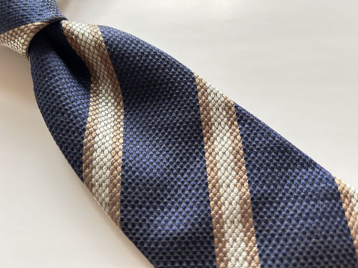 落ち着いたネイビーベースのストライプタイで、トラッド感溢れる逸品です。
